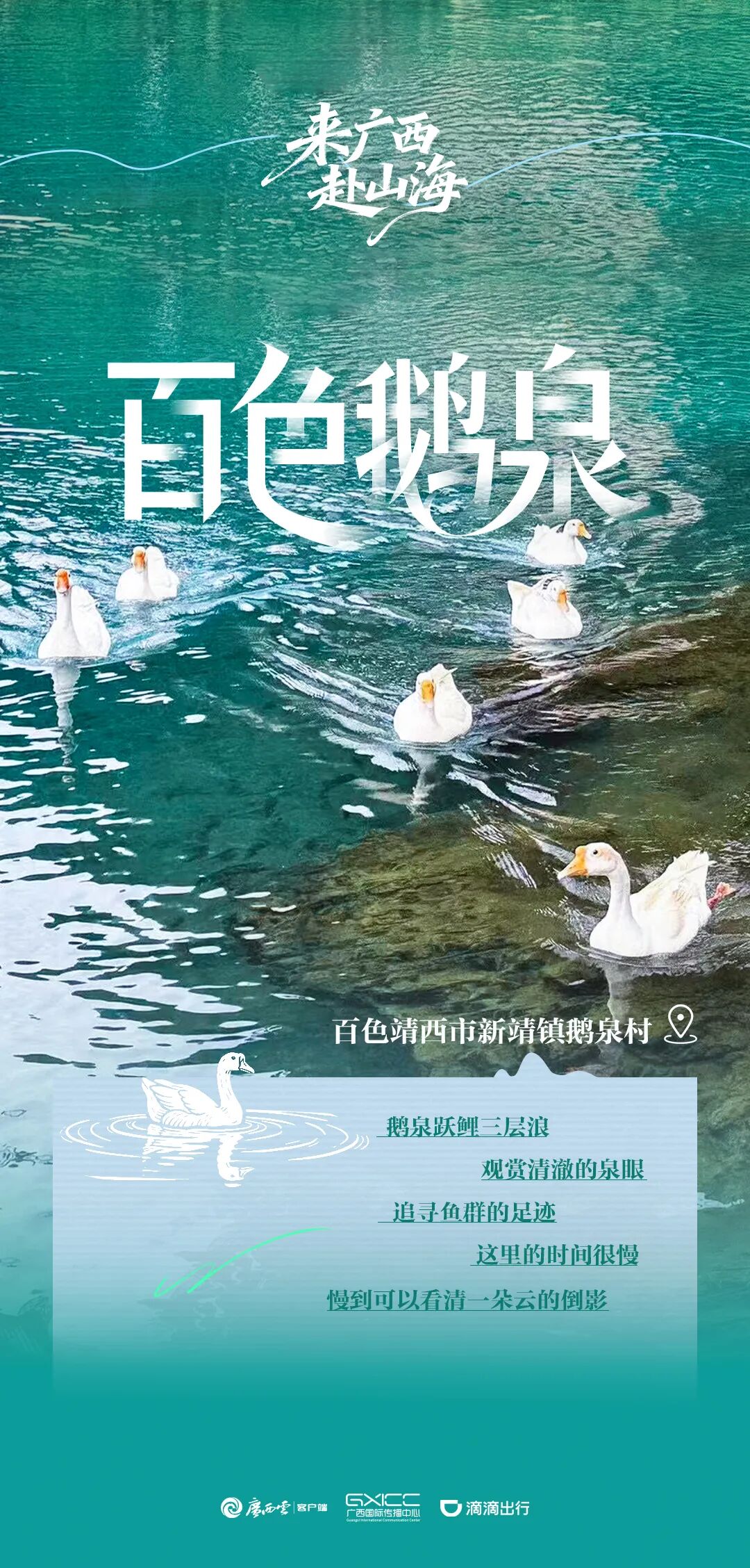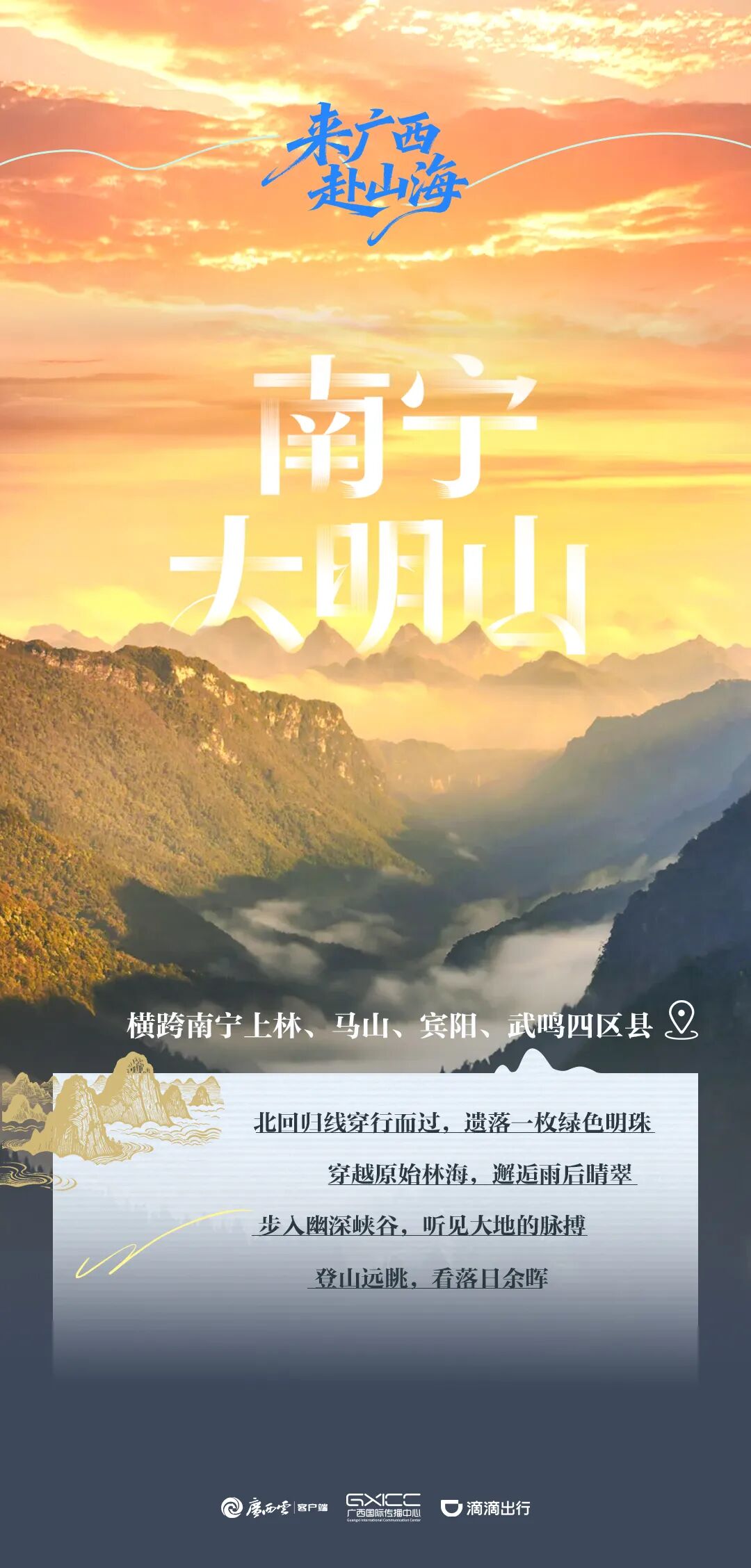 近日 電視劇《赴山�!返臒岵� 讓無數(shù)人心中燃起對江湖的向往 其實(shí)在廣西 也有現(xiàn)實(shí)版的“山海江湖” 這個國慶、中秋假期 踏上前往廣西的旅程吧 前方是層巒疊嶂的迷蒙山影 耳畔是潮汐來去的浩蕩回響 總有一些地方,自帶風(fēng)與遠(yuǎn)方 如同劇中人執(zhí)劍遠(yuǎn)行的開場 來到廣西的那一刻 山海便開始用低語呼喚著你 大明山的美雄渾而深沉 遠(yuǎn)處伸延的山脊,是它青灰色的骨骼 步入古松與飛瀑共生的山水秘境 可于峰頂聽風(fēng),亦可于幽谷聽泉 乘船出海,欣賞絕美海岸線 潛入海底,與珊瑚共舞 騎上電瓶車,追逐日出與日落 與TA在五彩灘 欣賞海蝕平臺的印象派畫卷 登懸空棧道 感受北帝山險峻石壁的沖擊 拾級而上 看峰林如戟破開翻騰的云海 將壯麗景色盡收眼底 怪石灘上怪石嶙峋 這是大自然的精雕細(xì)琢 漲潮時看巨浪拍岸 聽濤聲講述�?菔癄的故事 讓海風(fēng)帶走疲憊 背起行囊,徒步浩坤湖 獨(dú)特的巖溶地貌景觀盡收眼底 藍(lán)天青山渾然一體,倒映水中 此刻,風(fēng)止、水靜、心自安 姑婆山溝壑縱橫,終年溪水潺潺 穿梭在蒼勁古樸的原始樹木間 看水流從數(shù)十丈高的崖頂傾瀉而下 在天然氧吧暢快呼吸 觀煙雨漓江,品山水美學(xué) 百里漓江就是百里畫廊 乘一葉竹筏緩緩前行,山影漸次退去 讓流淌的山水,將人溫柔地包裹 在望洲頂?shù)母呱讲莸樯?/p> 奔跑、躺臥、發(fā)呆 立于山頂,待破曉時分 看一場日出云海 鵝泉水長年清澈,游魚可數(shù) 漫步湖邊,看白鵝嬉戲,魚兒泛清漪 日落時分,乘坐竹筏穿過十八孔橋 享受不慌不忙的松弛 來趟廣西吧 山的堅(jiān)韌與海的遼闊 都為你等候 每一股山風(fēng),每一朵浪花 都在喚你來 滴滴一下,現(xiàn)在就出發(fā)! 監(jiān)制丨羅猛 統(tǒng)籌丨黃儷 湯潔葵 梁雨芃 策劃丨姚佳琪 文案丨黃婷婷 設(shè)計(jì)丨梁嵐 馮善偉 視頻制作丨陀瑞祺 姚佳琪 互動運(yùn)營丨滿佳陽 鳴謝丨桂霞客全媒體工作室、廣西國際傳播中心、貴港市融媒體中心、姑婆山旅游度假區(qū) |