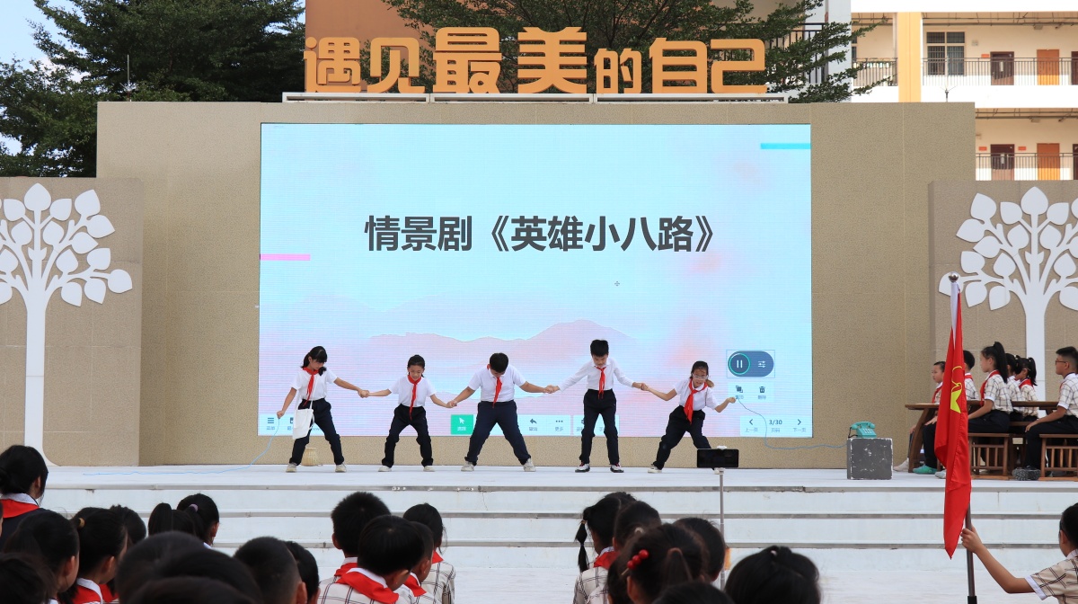 火紅隊旗引路,嘹亮隊歌飛揚。10月11日,在第76個少先隊建隊日來臨之際,南寧市盤古路小學舉行“強國復興有我 爭當新時代好少年”主題隊日活動暨新隊員入隊儀式。全校師生齊聚操場,共同見證新隊員加入少先隊組織的光榮時刻,在星星火炬的指引下傳承紅色基因,筑牢信仰之基。 儀式在莊嚴的升旗儀式中拉開序幕。伴隨著雄壯的《義勇軍進行曲》,五星紅旗冉冉升起,全體師生肅立行注目禮,稚嫩的臉龐上寫滿崇敬。升旗儀式后,入隊儀式正式啟動,旗手們邁著鏗鏘有力的步伐,高擎隊旗緩緩入場,《出旗曲》的旋律激蕩人心,全體少先隊員齊刷刷舉起右手敬隊禮,目光緊緊追隨那面象征使命與榮耀的隊旗。 “我們是共產主義接班人,繼承革命先輩的光榮傳統(tǒng)……”在大隊輔導員的帶領下,全場隊員齊唱《中國少年先鋒隊隊歌》,歌聲嘹亮激昂,唱出了新時代少年對少先隊組織的熱愛與向往。隨后,大隊委邁著整齊的步伐走上主席臺,莊重宣讀新隊員代表名單。 最令人動容的環(huán)節(jié)當屬佩戴紅領巾儀式。高年級少先隊員代表手持鮮艷的紅領巾,小心翼翼地為新隊員系好領巾結,每一個動作都飽含著責任的傳遞。新隊員們輕輕撫摸胸前的紅領巾,眼神中滿是敬畏與珍惜,隨后與老隊員互敬隊禮,紅色基因在這一敬一禮間悄然賡續(xù)。在少先隊大隊長的帶領下,新隊員們面向隊旗高舉右拳,莊嚴宣誓:“我是中國少年先鋒隊隊員,我在隊旗下宣誓……為共產主義事業(yè)貢獻力量!”稚嫩卻鏗鏘的誓言響徹校園,成為孩子們成長路上最珍貴的記憶。 儀式現場,學校少工委宣布新任大隊委員名單。學校黨總支書記、少工委主任黃寶菊,校長李玉月走上前,為新一屆大隊委佩戴象征責任的臂章,逐一頒發(fā)任職證書。接過證書的大隊委們神情莊重,紛紛表示將以實際行動履行隊干職責,做好全體隊員的榜樣。 隨后,學校黨總支書記、少工委主任黃寶菊發(fā)表講話,向新隊員們表示熱烈祝賀,對全體少先隊員提出殷切希望:“紅領巾是光榮的象征,更是責任的標志。希望你們以紅心向黨,鑄牢信仰之魂;以恒心求知,夯實成長之基;以善心待人,涵養(yǎng)品格之根,真正做到‘紅領巾愛祖國,爭做好隊員’�!秉S書記的話語語重心長,為隊員們的成長指明了方向。 歌以傳情悟初心 薪火永承育新人——主題隊課點亮紅色童年 在主題隊日活動上,學校全體少先隊員集中上《歌以傳情 薪火永承》主題隊課,大隊輔導員鄧靜雯老師以“探秘隊歌、感悟當下、暢想未來”為主線,讓紅色精神浸潤童心。 探秘隊歌・汲取紅色力量 鄧老師以“隊歌背后有哪些動人故事”開篇,5名隊員通過情景劇,再現《英雄小八路》中“人肉電線傳指令”的經典場景,瞬間吸引全場注意力。隨后鄧老師講解:“這部電影的主題曲,正是1978年確定的少先隊隊歌!”緊接著開展“尋寶貼貼樂”游戲,各小隊將隊歌關鍵詞(如“勇敢”“團結”)與歷史畫面匹配,分享時隊員們用“戰(zhàn)士互相掩護對應‘不怕敵人’”等表述,展現對隊歌精神的理解。最后全體起立齊唱隊歌片段,歌聲中滿是對革命先輩的敬意。 點亮心聲・感受祖國榮光 “從戰(zhàn)火到祥和,隊歌見證祖國變遷!”鄧老師播放《燈火里的中國》MV,隊員們看著都市霓虹、鄉(xiāng)村篝火,紛紛分享感受:“萬家燈火是團圓!”“崗哨燈光是守護!”隨后的“心聲光波”環(huán)節(jié),各年級依次高呼“請黨放心,強國有我”,三遍誓言鏗鏘有力,彰顯新時代隊員的擔當。 暢想未來・播種強國夢想 “怎樣讓祖國的未來更美好?”中隊長的提問引發(fā)思考。鄧老師引導隊員寫下“當醫(yī)生護健康”“做科學家強祖國”等夢想便簽,貼在班級KT板上。分享環(huán)節(jié),隊員們大聲說出航天夢、教師夢,眼中滿是憧憬。最后全場齊唱《燈火里的中國》高潮部分,配合祖國發(fā)展視頻,將隊課氛圍推向高潮。 “準備著,為共產主義事業(yè)而奮斗!”“時刻準備著!”隊課尾聲,在大隊輔導員的帶領下,全體隊員再次進行集體呼號,響亮的回應震徹云霄,彰顯著新時代少先隊員的昂揚風貌。 伴隨著莊嚴的退旗曲,隊旗緩緩退場,全體隊員再次敬禮。至此,南寧市盤古路小學紀念中國少年先鋒隊建隊76周年主題隊日活動暨新隊員入隊儀式圓滿落幕。此次活動不僅為少先隊組織注入了新鮮血液,更通過生動的主題隊課,讓紅色精神真正走進隊員心中。相信在星星火炬的照耀下,隊員們必將牢記誓言,以歌傳情、以行踐諾,讓紅領巾在新時代綻放更加鮮艷的光芒。 |