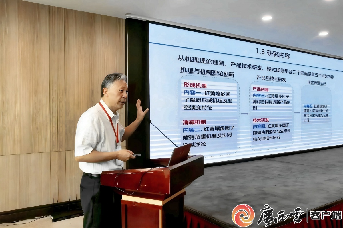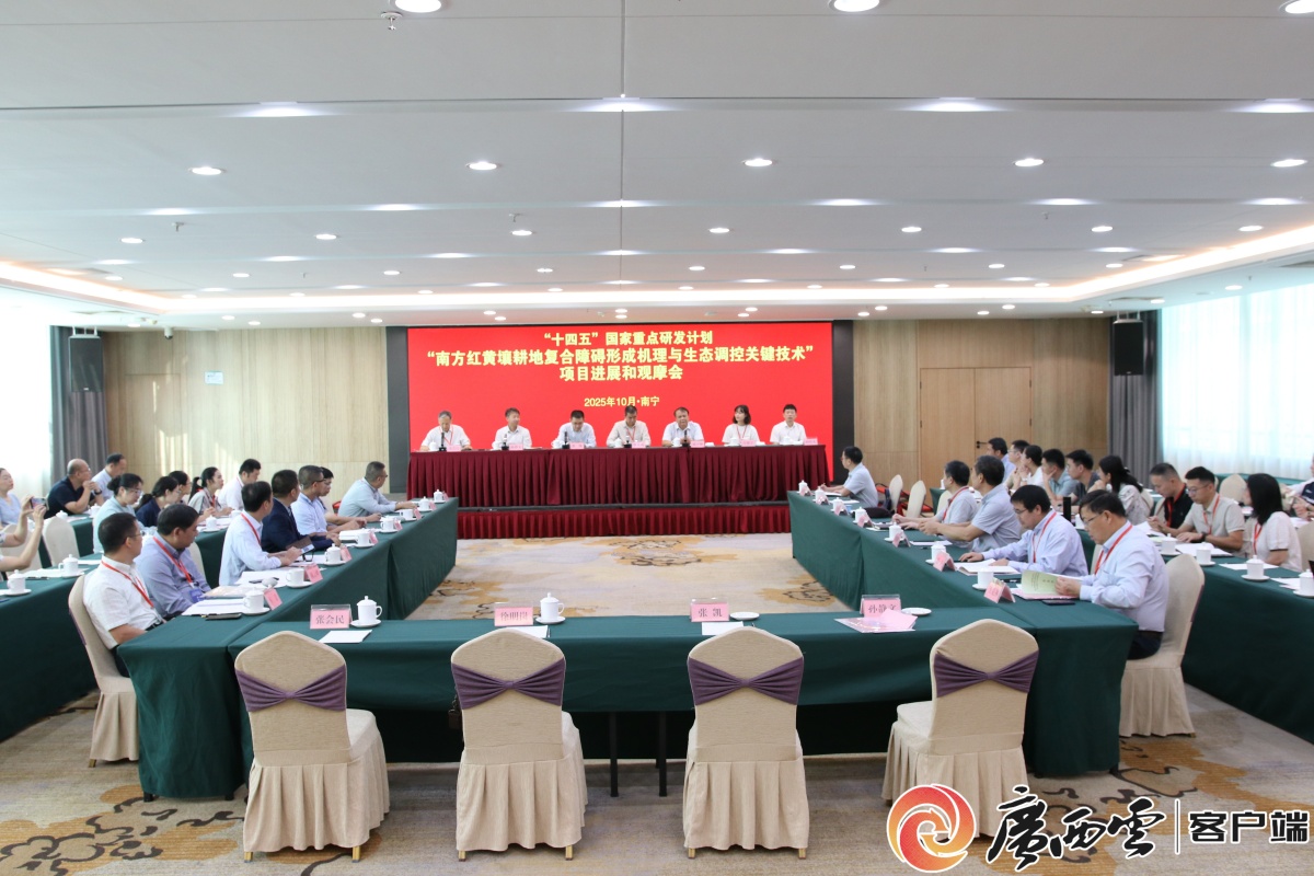10月18日至20日,國(guó)家重點(diǎn)研發(fā)計(jì)劃項(xiàng)目“南方紅黃壤耕地復(fù)合障礙形成機(jī)理與生態(tài)調(diào)控關(guān)鍵技術(shù)”現(xiàn)場(chǎng)觀摩暨工作推進(jìn)會(huì)在南寧召開。會(huì)議匯聚60多名行業(yè)專家、科研骨干及相關(guān)單位代表,圍繞紅黃壤耕地治理難題展開深入交流,為南方紅黃壤耕地質(zhì)量提升與農(nóng)業(yè)可持續(xù)發(fā)展注入新動(dòng)能。 項(xiàng)目實(shí)施進(jìn)展交流會(huì)。通訊員 寧蕾 攝 廣西超65%的耕地為酸性耕地,“酸、粘、板、瘦”等復(fù)合障礙問題相互交織,嚴(yán)重制約耕地質(zhì)量與作物產(chǎn)能的提升,成為影響廣西農(nóng)業(yè)高質(zhì)量發(fā)展的關(guān)鍵瓶頸。廣西農(nóng)科院資環(huán)所承擔(dān)的子課題“紅壤水旱輪作復(fù)合障礙協(xié)同消減與生態(tài)阻控模式構(gòu)建與示范”緊密結(jié)合廣西耕地特點(diǎn),持續(xù)推進(jìn)紅壤改良,目前已成功建設(shè)1185畝典型示范基地,為紅壤治理技術(shù)的落地應(yīng)用提供了生動(dòng)范本,預(yù)計(jì)核心示范區(qū)耕地質(zhì)量提高0.2—0.3個(gè)等級(jí)以上,作物增產(chǎn)15%—20%。 中國(guó)農(nóng)科院農(nóng)業(yè)資源與農(nóng)業(yè)區(qū)劃所研究員、項(xiàng)目首席張會(huì)民介紹項(xiàng)目情況。通訊員 寧蕾 攝 交流會(huì)上,來自中國(guó)農(nóng)科院、中國(guó)科學(xué)院、湖北農(nóng)科院、江西農(nóng)科院的專家先后圍繞“紅黃壤多因子障礙形成機(jī)理及時(shí)空演變特征”“紅黃壤多因子障礙危害機(jī)制及消減途徑”“紅黃壤多因子障礙協(xié)同消減新產(chǎn)品創(chuàng)制”等課題展開匯報(bào),與會(huì)人員圍繞項(xiàng)目推進(jìn)情況、技術(shù)創(chuàng)新成果展開深入探討。 與會(huì)人員在紅壤水旱輪作千畝示范區(qū)現(xiàn)場(chǎng)觀摩。通訊員 寧蕾 攝 會(huì)后,與會(huì)人員前往廣西南寧市賓陽縣新圩鎮(zhèn)的紅壤水旱輪作千畝示范區(qū)進(jìn)行現(xiàn)場(chǎng)觀摩,直觀感受紅壤治理的階段性成效。 |