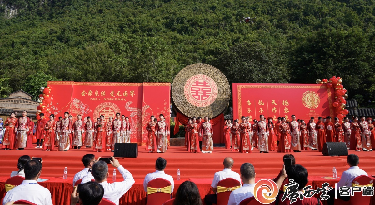視頻制作:記者 郭燕群 為慶祝中越建交75周年暨“中越人文交流年”,10月17日至19日,由自治區(qū)總工會、廣西出入境邊防檢查總站聯(lián)合主辦的“會聚良緣 愛無國界”中越德天·板約瀑布集體婚禮活動在崇左舉辦,來自中國和越南邊境的38對新婚青年夫妻及金婚、銀婚夫婦代表參與活動。 集體婚禮現(xiàn)場。 此次活動是自治區(qū)總工會貫徹落實全國總工會、國家移民管理局“工會暖邊固防溫暖行動”工作部署的具體實踐,也是持續(xù)深化“會聚良緣”工會服務品牌建設的重要舉措�;顒泳劢惯吘陈毠せ閼傩枨�,通過搭建規(guī)范化、特色化的婚戀交流平臺,進一步深化中越兩國人民的深厚情誼,為構建中越命運共同體注入民間友好交流的活力,助力邊境地區(qū)人文和諧與穩(wěn)定發(fā)展。 活動現(xiàn)場環(huán)節(jié)緊湊、互動熱烈,設置了中越特色歌舞表演、新人宣讀《婚俗文明倡議書》、交換愛情信物、祈福掛同心鎖、豐收節(jié)晚會等環(huán)節(jié),展現(xiàn)了中越雙方協(xié)同聯(lián)動與文化交融的鮮明特色。 |