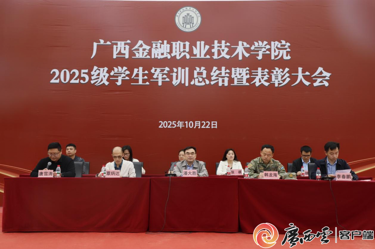 軍訓(xùn)隊(duì)伍分列式行進(jìn)氣勢(shì)如虹,擒敵拳演練剛勁有力,匕首操匯演靈動(dòng)迅猛,捕俘拳演示招招制敵,警棍盾牌操表演協(xié)同默契,戰(zhàn)術(shù)科目實(shí)景模擬更將現(xiàn)場(chǎng)氣氛推向高潮……10月22日上午,廣西金融職業(yè)技術(shù)學(xué)院2025級(jí)學(xué)生軍訓(xùn)總結(jié)暨表彰大會(huì)分別在東、西兩校區(qū)田徑場(chǎng)舉行,學(xué)生們的颯爽英姿、勁爆演練引得觀眾陣陣贊嘆。 東校區(qū)大會(huì)現(xiàn)場(chǎng)。學(xué)校供圖