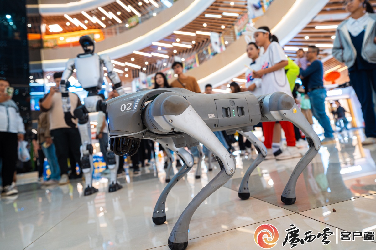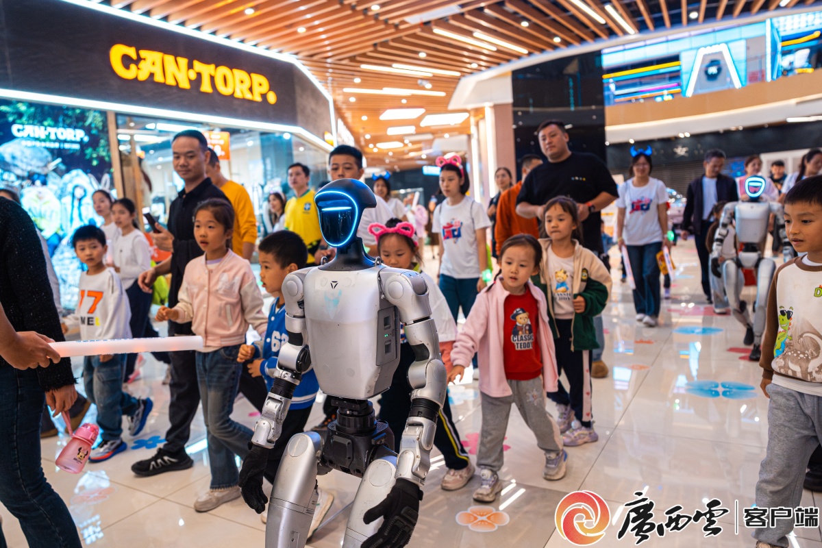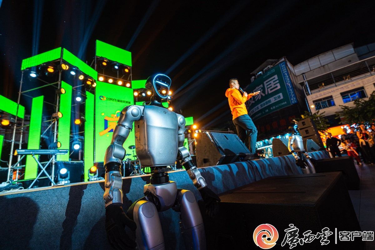10月25日晚,在賀州市繽紛環(huán)球城電音節(jié)現(xiàn)場(chǎng),機(jī)器人與群眾互動(dòng)。(賽事主辦方供圖) 此外,在本屆賽事的配套活動(dòng)區(qū)設(shè)置科技文旅體驗(yàn)矩陣,賽事期間,位于賀州市區(qū)中心的繽紛環(huán)球城商場(chǎng)內(nèi),人形機(jī)器人引導(dǎo)選手完成打卡。這些創(chuàng)新實(shí)踐,不僅提升賽事服務(wù)品質(zhì),更彰顯廣西人工智能產(chǎn)業(yè)發(fā)展的蓬勃生機(jī)。