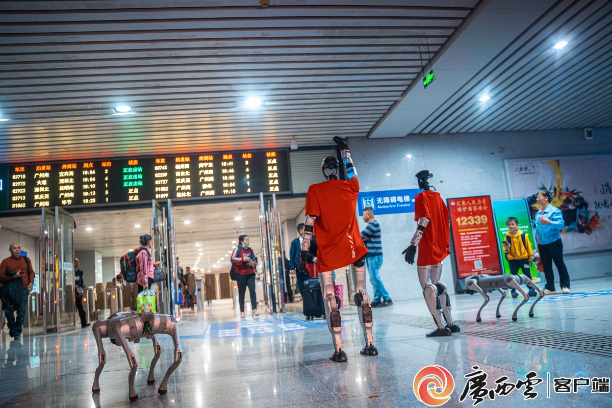 在賀州高鐵站,人形機(jī)器人以智能交互系統(tǒng)與志愿者共同為到站選手提供即時(shí)的指引咨詢服務(wù)。(賽事主辦方供圖) 賽前兩天,在賀州高鐵站,人形機(jī)器人以智能交互系統(tǒng)與志愿者共同為到站選手提供即時(shí)的指引咨詢服務(wù)。來(lái)自廣東省的參賽選手張志軍說(shuō):“昨天中午在出站口就看到機(jī)器人和機(jī)器狗的迎接,還和它們合了影,很特別的賽事體驗(yàn)�!� 在賽前領(lǐng)物區(qū),一臺(tái)AI咖啡機(jī)器人吸引了眾多參賽選手的圍觀。記者在現(xiàn)場(chǎng)看到,機(jī)械臂以精準(zhǔn)的節(jié)奏舞動(dòng),機(jī)械臂的末端,一只精巧的咖啡豆研磨器正“嗡嗡”運(yùn)轉(zhuǎn),將新鮮烘焙的咖啡豆碾成細(xì)密的粉末,香氣如煙霧般在空氣中彌散開(kāi)來(lái)。