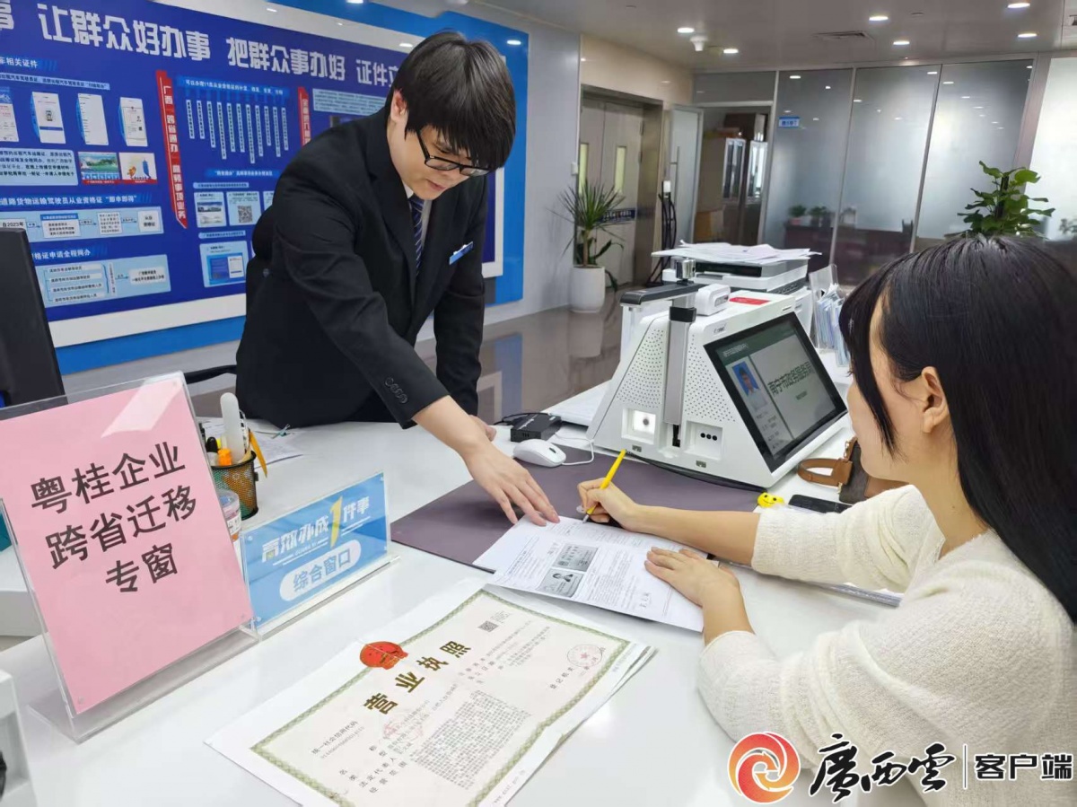企業(yè)相關(guān)負責(zé)人在南寧市民中心領(lǐng)取了變更后的營業(yè)執(zhí)照。羅珍 攝 為積極響應(yīng)企業(yè)訴求,優(yōu)化跨省遷移體驗,南寧市政務(wù)服務(wù)局充分運用“粵桂企業(yè)跨�。▍^(qū))遷移新模式”這一創(chuàng)新舉措,聚焦“三個強化”——強化上下聯(lián)動與跨區(qū)域協(xié)同、強化流程再造、強化數(shù)據(jù)賦能,有效破解了企業(yè)跨省遷移中流程復(fù)雜、周期過長等傳統(tǒng)難題。據(jù)介紹,通過“粵桂企業(yè)跨�。▍^(qū))遷移新模式”可將企業(yè)申請材料由39份精簡至6份,辦理環(huán)節(jié)由15個壓減至2個,跑動次數(shù)由14次減少到2次,原本需要68個工作日的遷移流程壓縮至8個工作日內(nèi)完成,實現(xiàn)了遷移效率的大幅提升。 南寧市政務(wù)服務(wù)局副局長梁麗表示,該市將持續(xù)總結(jié)“高效辦成跨省遷移一件事”的成功經(jīng)驗,進一步深化政務(wù)服務(wù)改革,以更優(yōu)的營商環(huán)境、更高的服務(wù)效能,吸引和匯聚國內(nèi)外更多優(yōu)質(zhì)要素資源,為全面推動中國與東盟在人工智能領(lǐng)域合作交流、深化粵桂東西部協(xié)作及助推首府經(jīng)濟高質(zhì)量發(fā)展貢獻力量。 |