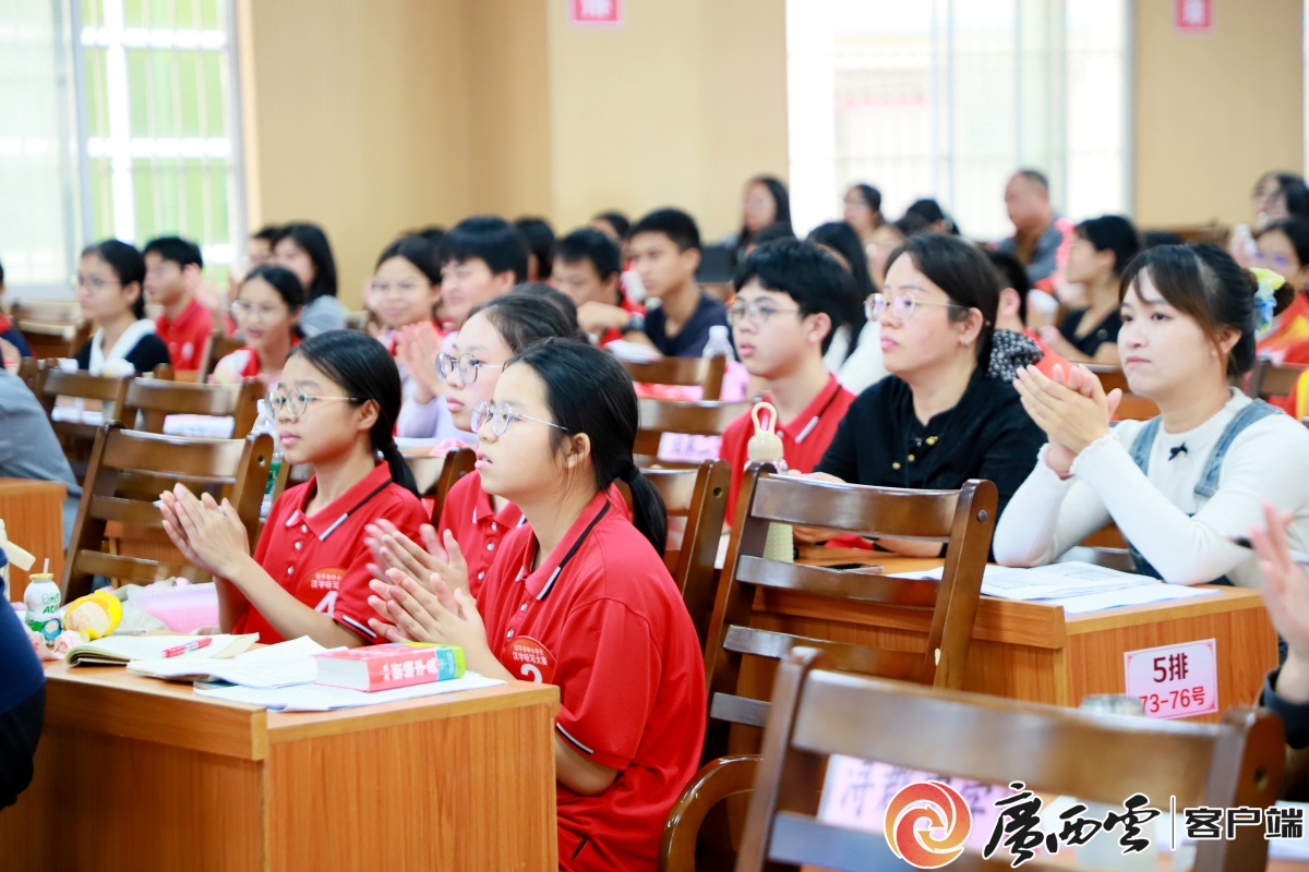 師生為選手精彩表現(xiàn)鼓掌。桂平市融媒體中心供圖 現(xiàn)場角逐中,選手們凝神靜聽、規(guī)范書寫,從常用漢字到生僻字詞,從詩詞名句到文化常識(shí),一筆一畫間盡顯扎實(shí)功底,充分展現(xiàn)了中小學(xué)生對(duì)漢字文化的熱愛與傳承。