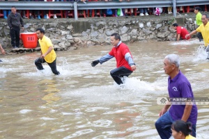 11月1日,2025年崇左市扶綏縣柳橋鎮(zhèn) “慶祝農(nóng)業(yè)豐收 傳承農(nóng)耕文明” 民俗文化活動(dòng)暨坡利村第十屆魚米節(jié)熱鬧啟幕。這場兼具文化韻味與鄉(xiāng)土風(fēng)情的盛會(huì),成為當(dāng)?shù)剜l(xiāng)村振興的重要載體,吸引著八方游客與村民共慶豐收。圖為選手們在“捉魚邀請賽”活動(dòng)現(xiàn)場捉魚。記者 李彬華 攝(廣西云-廣西日報(bào))