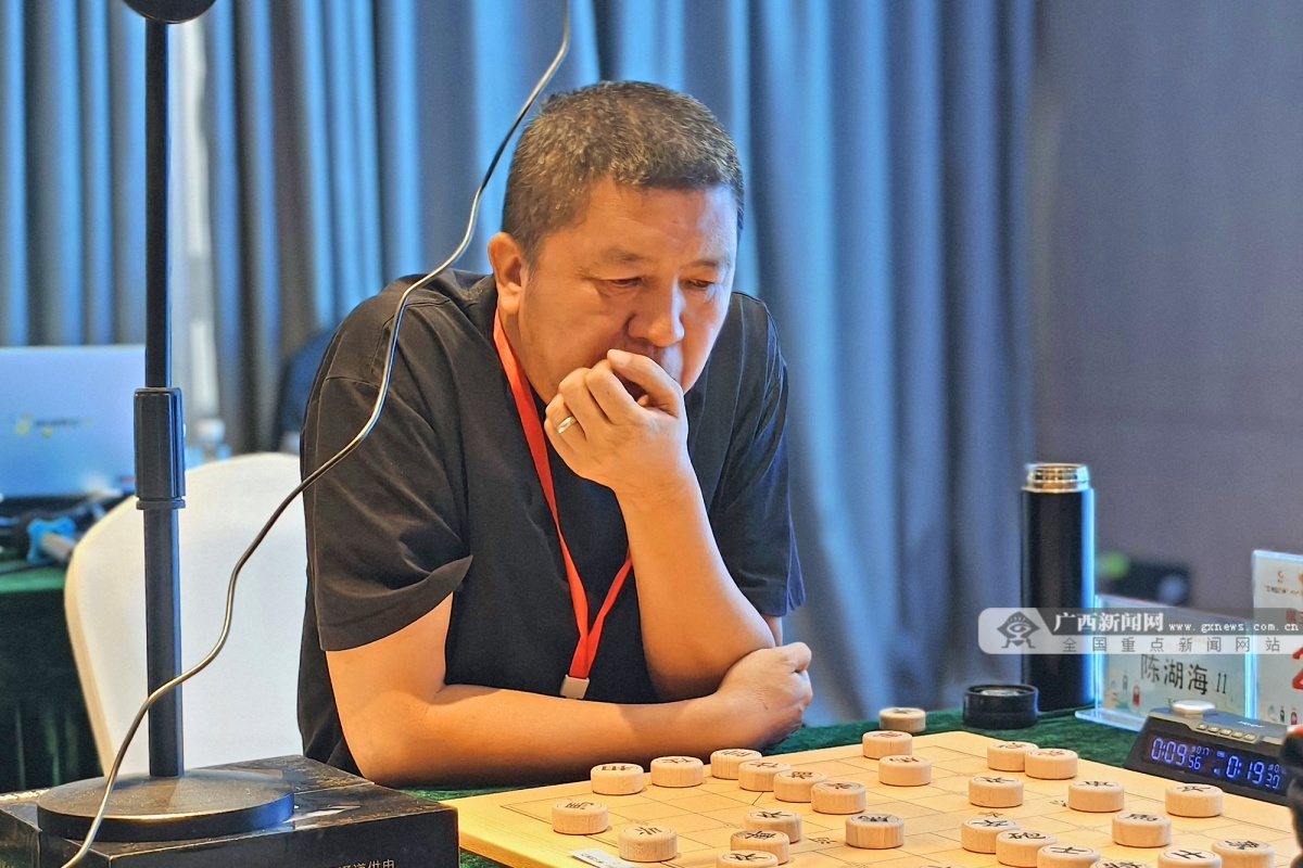 眾多廣西老牌棋手參賽讓賽事看點十足。圖為玉林棋手陳湖海在對局中思考。主辦方供圖 為期兩天的隔桌較量中,楚河漢界暗藏機鋒,棋手們謀棋布局,攻守殺伐盡顯云淡風輕,而勝負定格瞬間卻令人嘆為觀止。棋王組競爭最為激烈,該組參賽選手均為近20年來在廣西象棋錦標賽、區(qū)運會象棋項目比賽、中國體彩全國業(yè)余棋王爭霸賽等大型賽事中的優(yōu)勝棋手,陳湖海、陳建昌、石才貫、秦榮、林輝宇等眾多成名已久的老牌強手悉數(shù)應邀參賽,為這場廣西棋壇的年末大戲增色不少。