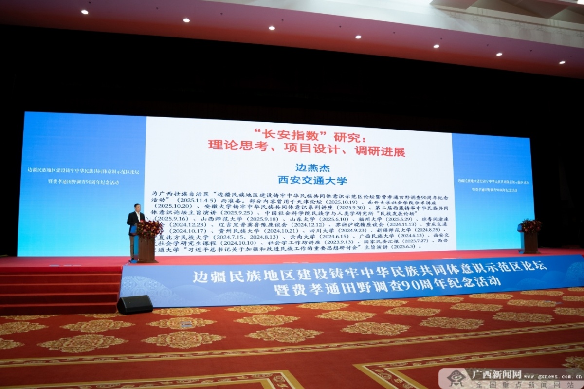 11月4日,邊疆民族地區(qū)建設(shè)鑄牢中華民族共同體意識示范區(qū)論壇暨費孝通田野調(diào)查90周年紀念活動在南寧開幕。