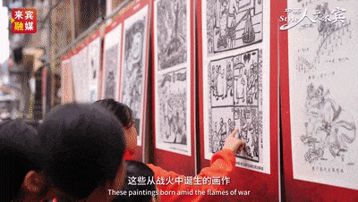 這些從戰(zhàn)火中誕生的畫作如不屈的種子,先后在桐嶺圩、廣州、武漢等地破土而出。極盡夸張、扭曲的筆觸,飽含血淚,仿佛刺向敵寇的利刃,匯聚了整個中華民族的怒吼與火光。 今天,這個沒能了卻的心愿跨越近百年的守望,在武宣老街的墻垣上蘇醒。后來,廖冰兄將那份在武宣閣樓中點燃的藝術(shù)火光,揚向了更廣闊的天地。 成就介紹 ● 1939年,廖冰兄以毛澤東著作《論持久戰(zhàn)》為靈感,創(chuàng)作《抗戰(zhàn)必勝連環(huán)圖》,通俗生動,深入人心。 ● 1945年,《貓國春秋》問世,轟動一時。辛辣諷刺、揭露戰(zhàn)后統(tǒng)治者陰謀,受到周恩來、郭沫若等人贊賞。 ● 1949年,當(dāng)選中國美協(xié)委員,藝術(shù)之路再攀高峰。 ● 1951年任廣州市文聯(lián)編輯出版部部長兼《廣州工人文藝》主編。 ● 晚年,成立廖冰兄人文專項基金,助學(xué)扶貧。 ● 2003年,榮獲第二屆中國美術(shù)金彩獎成就獎,藝術(shù)成就得到國際認(rèn)可。 ● 2006年,廖冰兄在廣州逝世,享年91歲。遵其遺愿,骨灰撒入故鄉(xiāng)母親河——象江。 根在廣西生廣東, 何鄉(xiāng)何族尚朦朧, 此夕初嘗蛤蚧酒, 方解鄉(xiāng)情似酒濃。 ——1983年·廖冰兄于廣西作