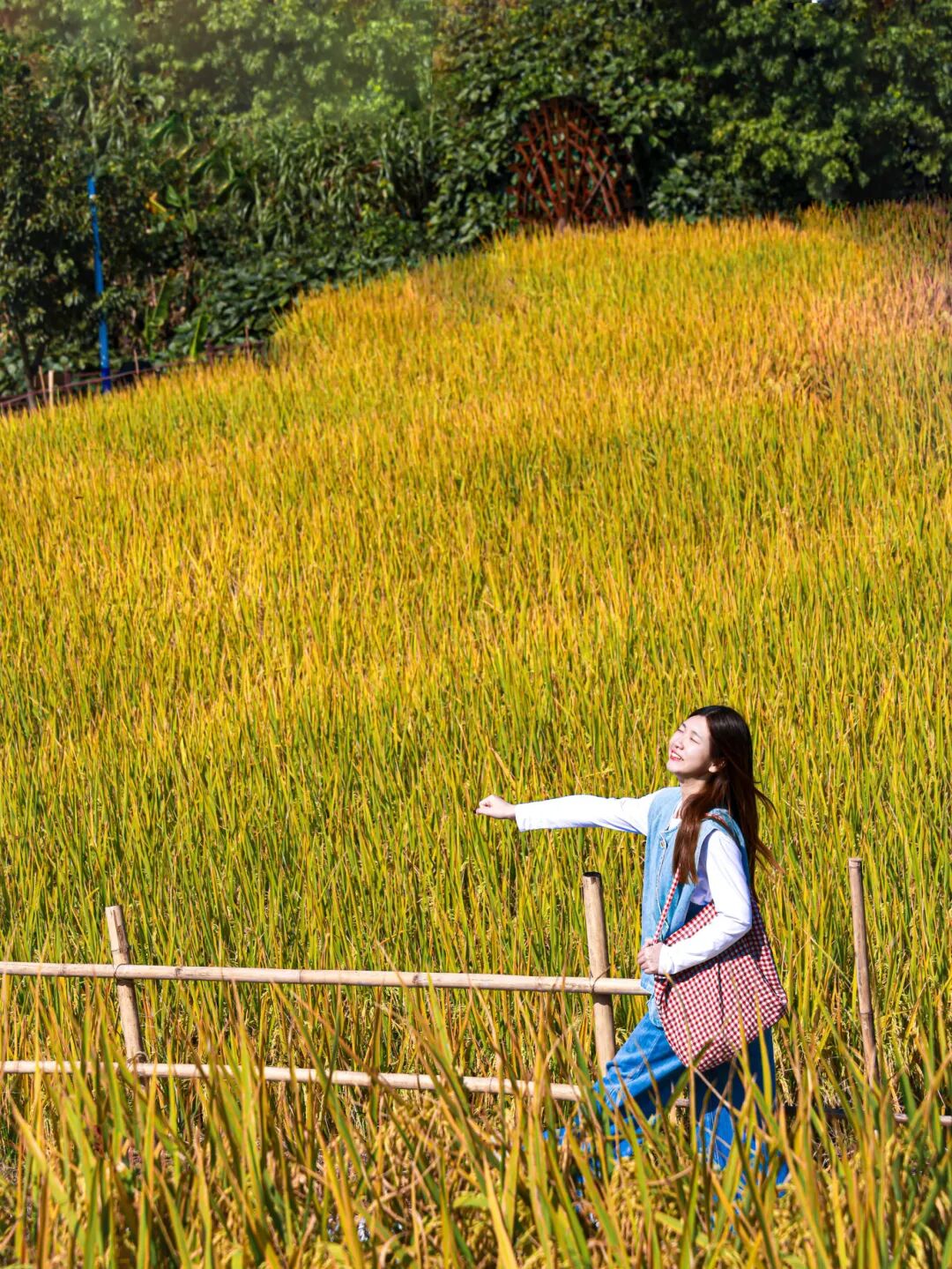走在金黃的稻浪中 迎著微風(fēng) 聞著稻香 鏡頭里的一顰一笑 都傳遞著幸福