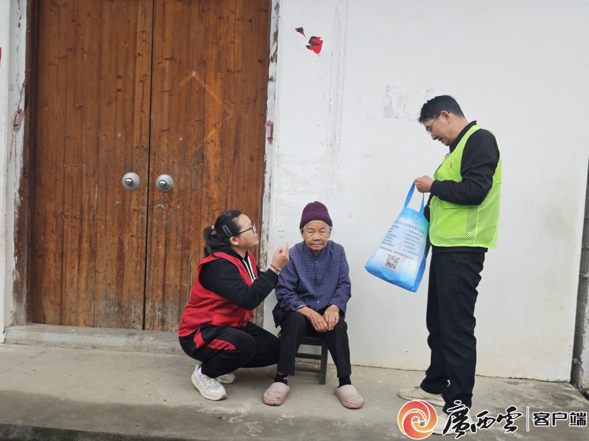志愿者開(kāi)展服務(wù)。 健康守護(hù)是服務(wù)隊(duì)的重點(diǎn)工作。99歲的李咪勾老人患有慢性濕疹,以往每月往返鎮(zhèn)衛(wèi)生院十分困難,服務(wù)隊(duì)將其列為重點(diǎn)對(duì)象后,協(xié)調(diào)鎮(zhèn)衛(wèi)生院提供上門(mén)診療,村醫(yī)廖家龍定期上門(mén)量血壓、查病情,志愿者還會(huì)同步開(kāi)展適老化改造。如今,上門(mén)問(wèn)診已成為常態(tài),村醫(yī)與志愿者的身影穿梭村巷,成為老人們的健康“守門(mén)人”。 “我們建立了老人動(dòng)態(tài)檔案與分級(jí)服務(wù)機(jī)制,構(gòu)建起‘兜底有保障、普惠有溫度、參與有動(dòng)力’的鄉(xiāng)村養(yǎng)老新格局�!贝妩h委書(shū)記、村委會(huì)主任韋恒焦介紹。駐村第一書(shū)記楊浩丹表示,讓鄉(xiāng)村振興成果惠及老年群體,是服務(wù)隊(duì)堅(jiān)守的初心。 |