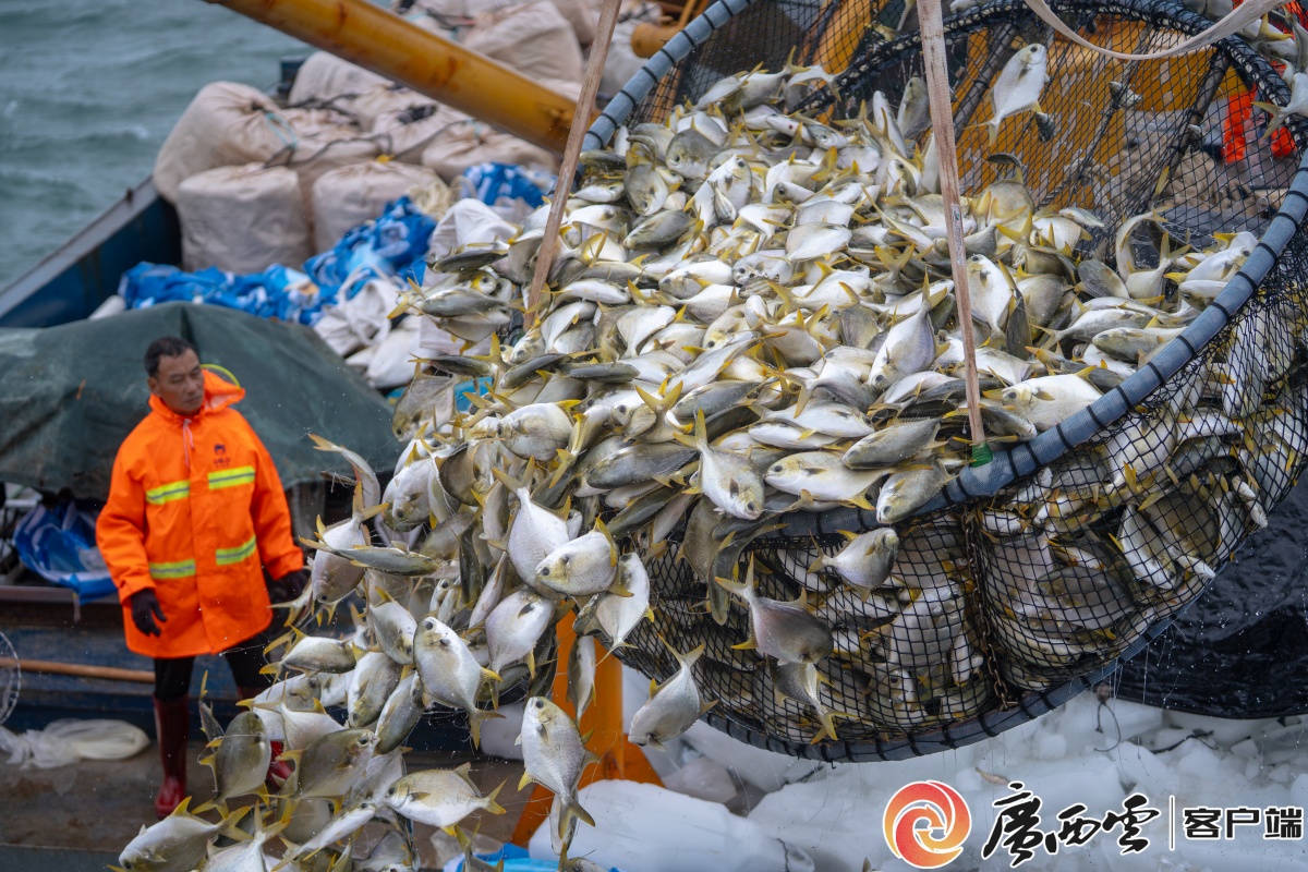 金鯧魚捕撈。 近年來,防城區(qū)堅持高質量發(fā)展理念,立足自身豐富海洋資源、產(chǎn)業(yè)基礎、區(qū)位優(yōu)勢,充分釋放“海”的活力,全力推進深水網(wǎng)箱養(yǎng)殖發(fā)展,支持、鼓勵和引導企業(yè)向海發(fā)展經(jīng)濟,促使全區(qū)漁業(yè)經(jīng)濟快速發(fā)展,金鯧魚養(yǎng)殖產(chǎn)業(yè)規(guī)模不斷擴大,漁民增收,實現(xiàn)從“靠海吃�!钡健跋蚝6d”“向海圖強”。如今,防城區(qū)的金鯧魚養(yǎng)殖產(chǎn)業(yè)成為了發(fā)展“向海經(jīng)濟”、助力漁民增收的關鍵產(chǎn)業(yè)之一,遍布在海上的一個個深�?癸L浪網(wǎng)箱,猶如一個個“聚寶盆”般屢屢爆“金”。據(jù)統(tǒng)計,截至目前,防城區(qū)共有深�?癸L浪金鯧魚養(yǎng)殖網(wǎng)箱763口,2024年防城區(qū)金鯧魚產(chǎn)量2.5萬噸,產(chǎn)值達5.39億元。 |