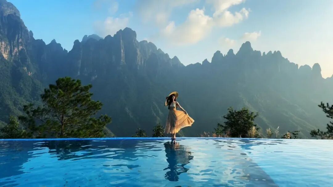 圣堂大峽谷好漢坡山頂?shù)臒o邊泳池。吳金晶 攝 “日照金山”遇上“云海爆發(fā)”雖是偶發(fā)事件,但這里的美麗卻始終如一。無論什么時(shí)候到來賓,都能輕松拍出你的“人生照片”!