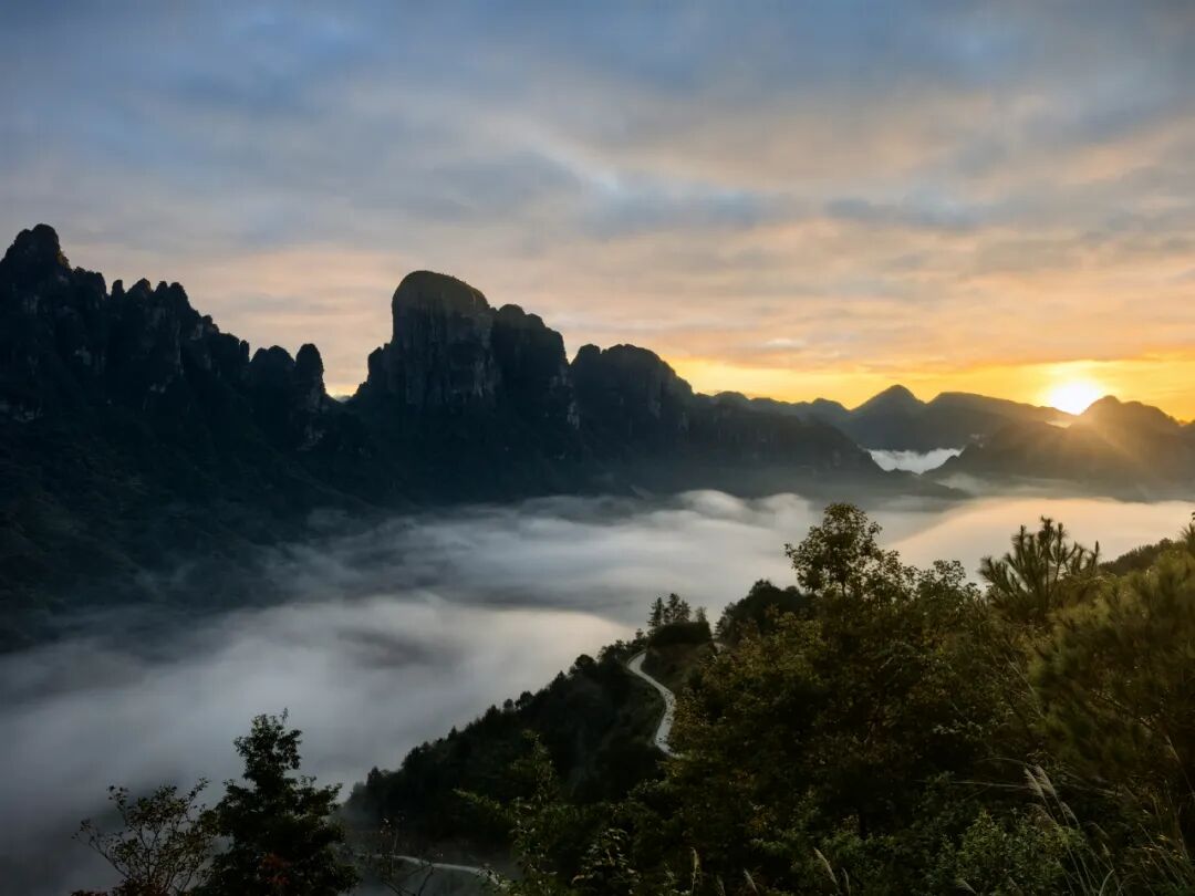 11月5日,網(wǎng)友在來賓市金秀瑤族自治縣六巷鄉(xiāng)大嶺村拍攝到了“日照金山”的震撼瞬間,美翻朋友圈!