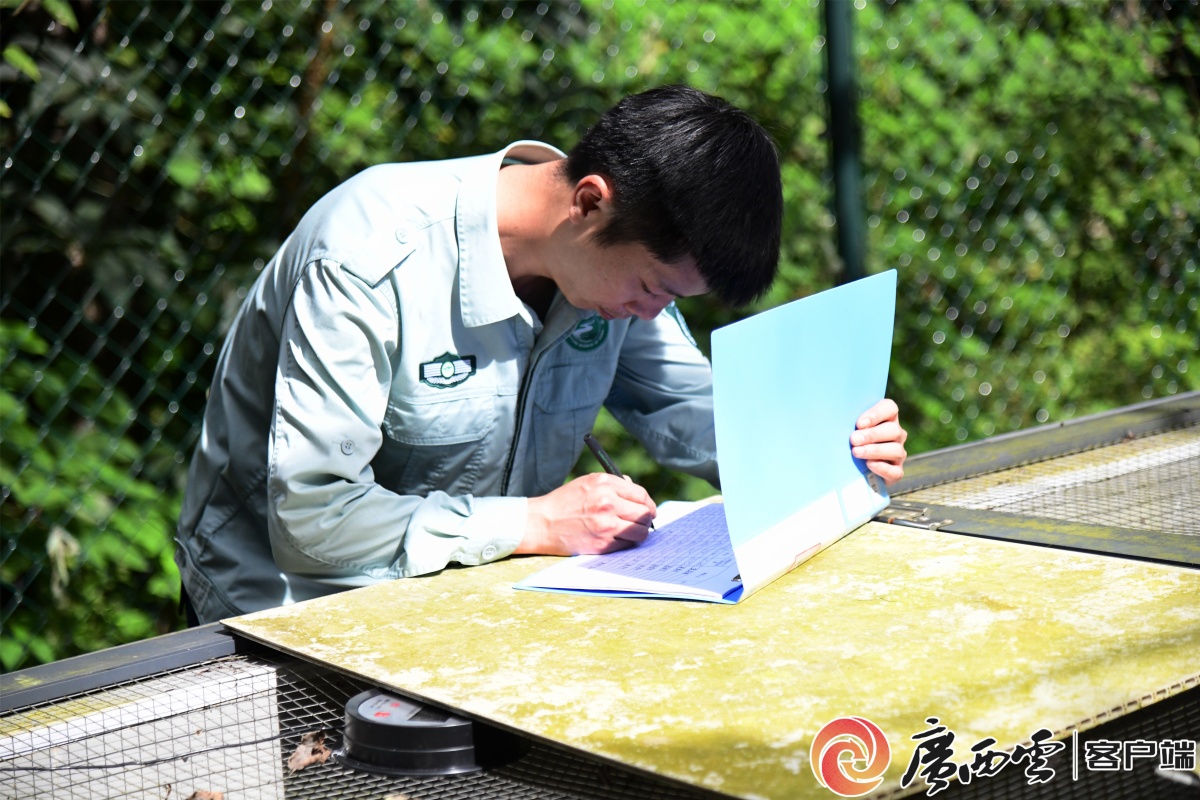 鱷蜥管護(hù)員檢測(cè)記錄氣溫。 黃建軍表示:“今年我們延續(xù)這套越冬方案,并根據(jù)鱷蜥個(gè)體差異細(xì)化管理,選取部分鱷蜥進(jìn)行室外越冬試驗(yàn),其余抗寒能力弱的鱷蜥將轉(zhuǎn)移至室內(nèi)按傳統(tǒng)方式管護(hù),管護(hù)員也會(huì)每天監(jiān)測(cè)溫度注意鱷蜥情況�!�