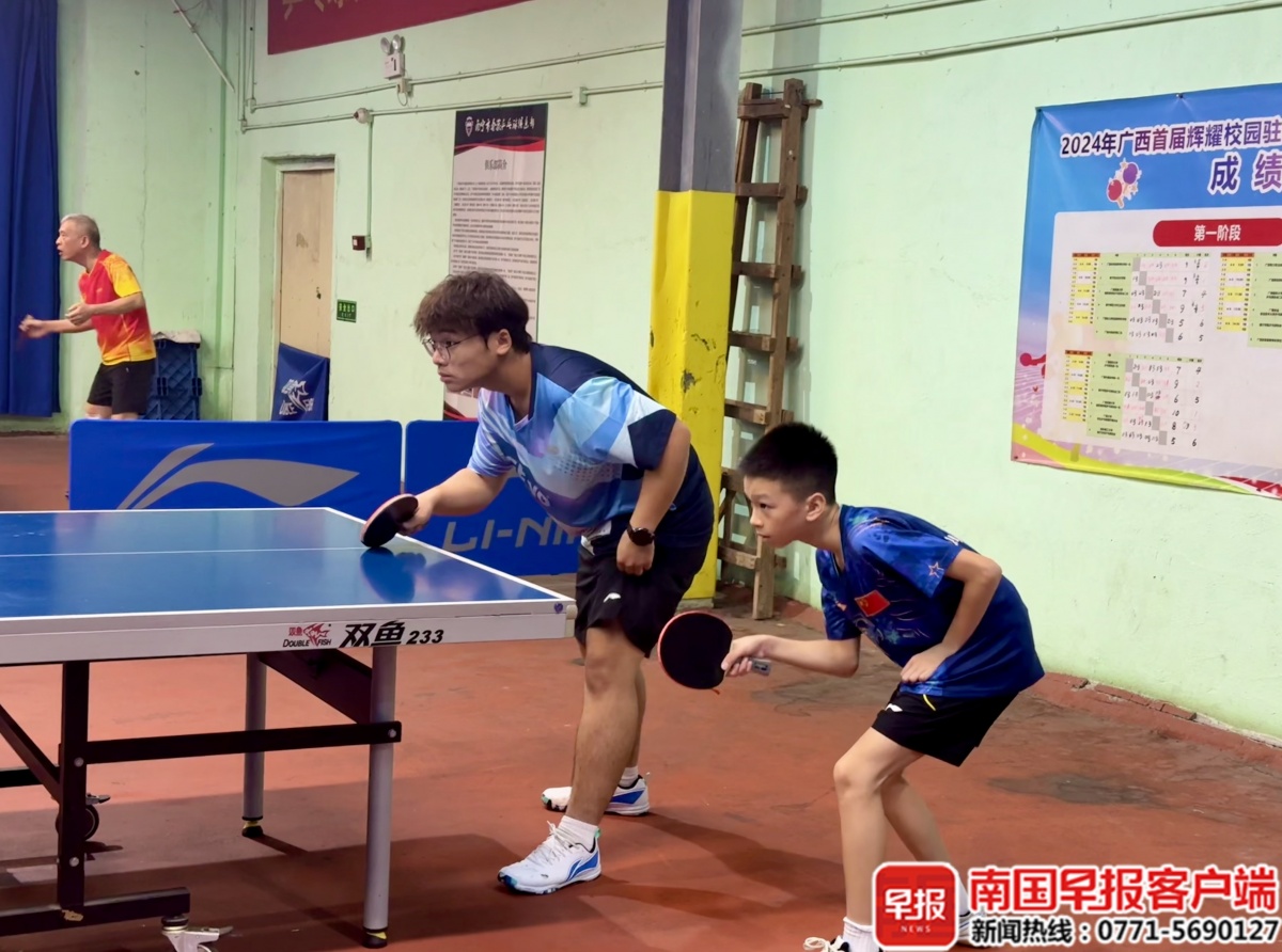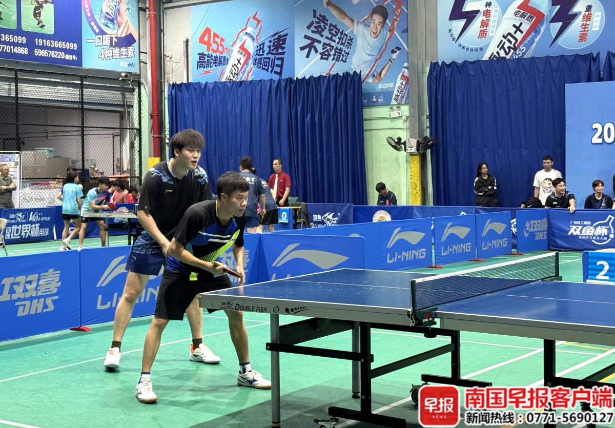 鄧惟尹(右)和隊友正等待發(fā)球。 賽場上不僅有新生代的敢打敢拼,也有老將的堅守熱愛。據(jù)介紹,不少剛剛參加了2025年第十五屆全運會群眾賽事的業(yè)余高手活躍在比賽中,雖然沒能代表廣西在全國舞臺上取得佳績,但他們并未氣餒,而是紛紛相互打氣,約定“四年后再沖全運”。