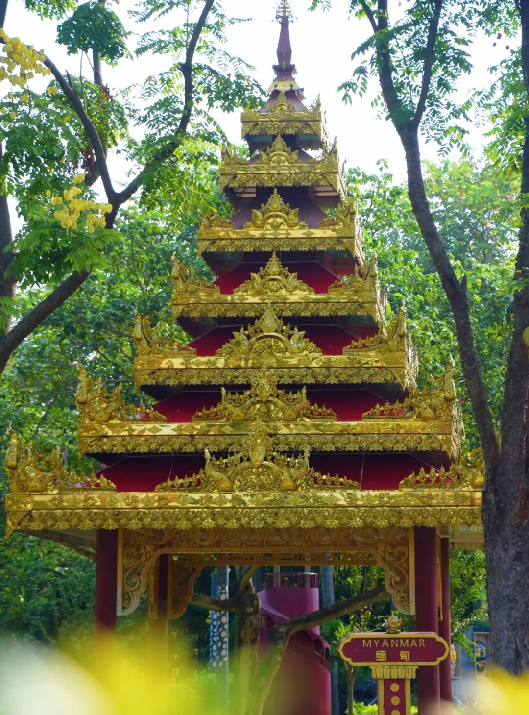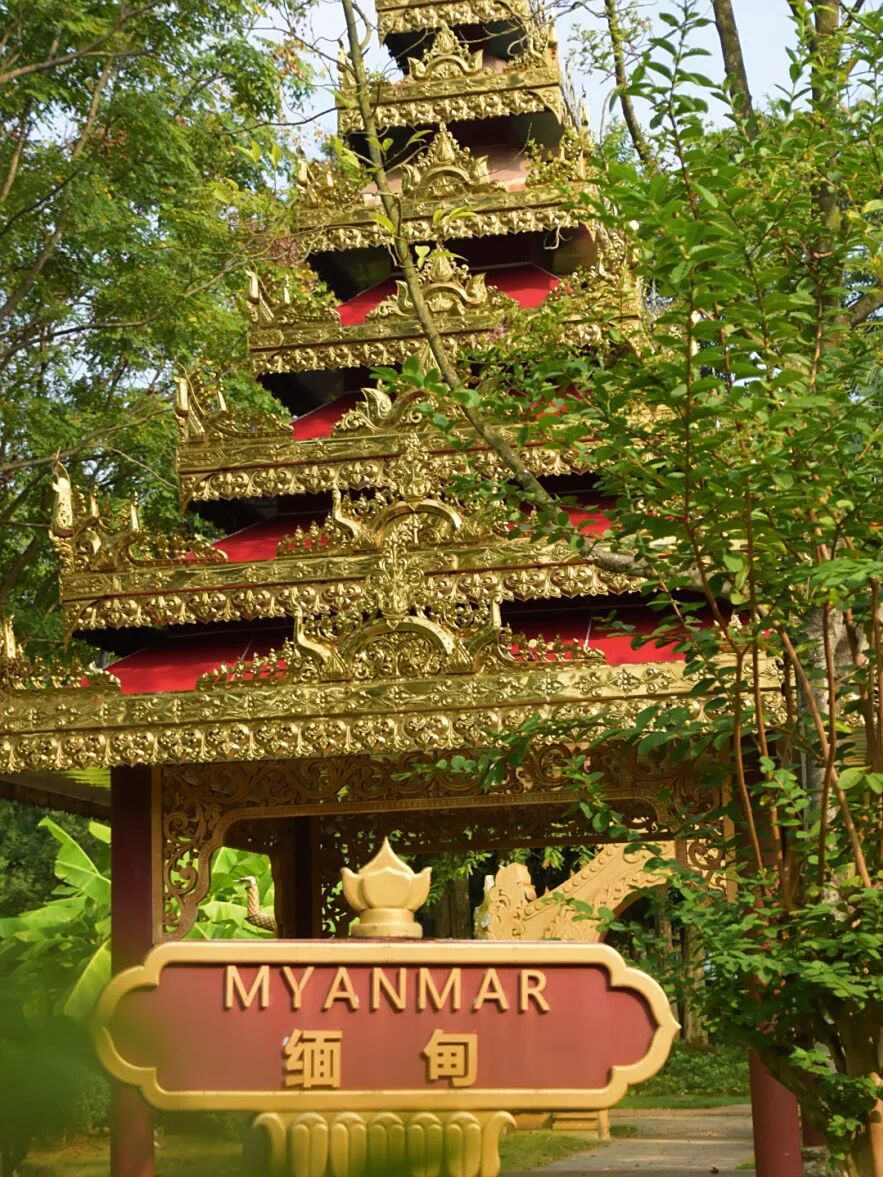 柳州園博園緬甸園的核心建筑涼亭,是國際友誼園中唯一由緬甸工匠親赴柳州打造的園林杰作。2011年落成之際,緬甸工匠攜本國設(shè)計的構(gòu)件與雕塑,以純手工雕琢出金碧輝煌的屋頂與精美的紋飾,將緬甸獨(dú)特的建筑魅力展現(xiàn)得淋漓盡致。
