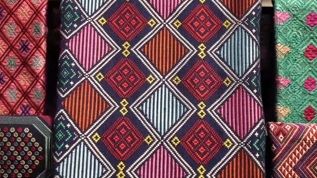 如今,壯錦的生產(chǎn)通過機(jī)械化,解決了寬幅和產(chǎn)量的問題,用途也從頭巾、布袋、嬰兒背帶等傳統(tǒng)物件,拓展至日常生活多個領(lǐng)域。