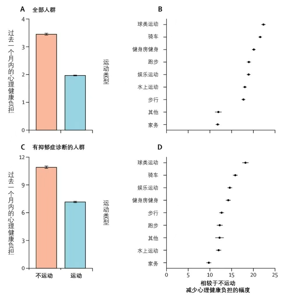 一項(xiàng)涉及超過(guò)120萬(wàn)的超大規(guī)模調(diào)查研究發(fā)現(xiàn),與不運(yùn)動(dòng)的人相比,經(jīng)常運(yùn)動(dòng)的人報(bào)告的每月心理健康不佳天數(shù)平均減少1.49天,降幅達(dá)到43.2%,尤其是對(duì)于那些既往有抑郁癥診斷的人來(lái)說(shuō)效果更好,運(yùn)動(dòng)能讓他們每個(gè)月心理健康不佳的天數(shù)減少3.75天,降幅也達(dá)到了34.5%。而且,在所有的運(yùn)動(dòng)類型中,球類運(yùn)動(dòng)起到的效果是最好的,能夠減少大約22.3%的心理負(fù)擔(dān),而羽毛球運(yùn)動(dòng)就是其中之一。