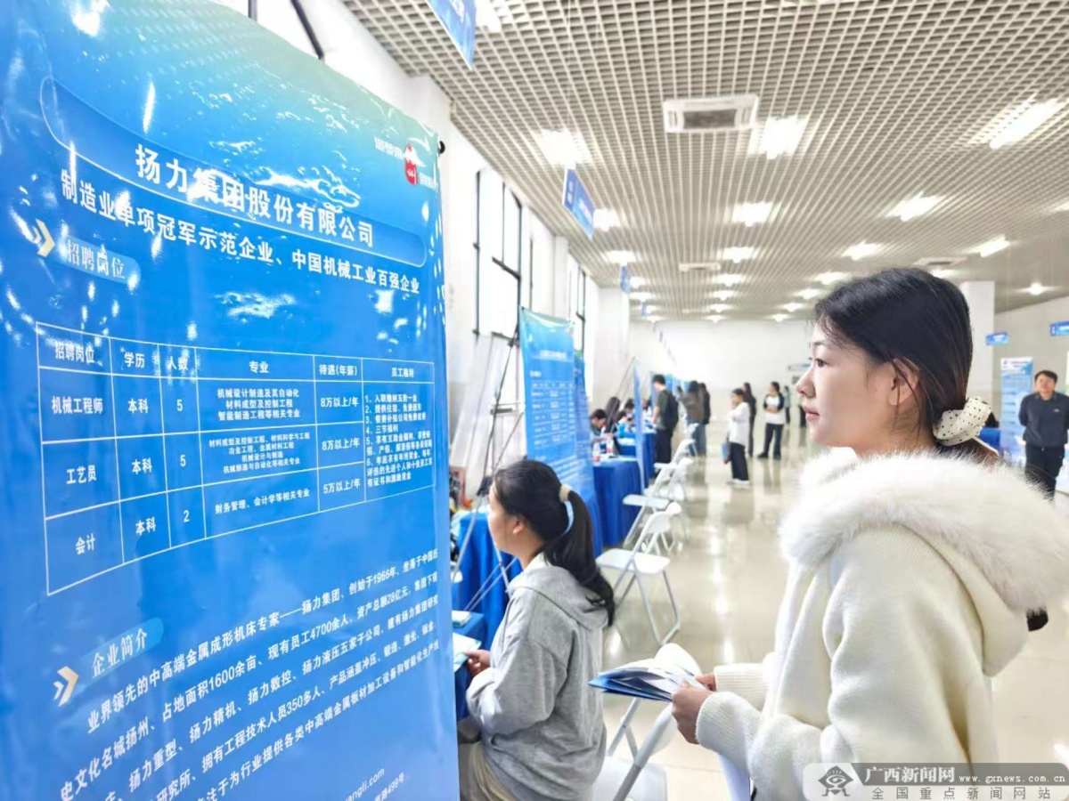 “招聘會(huì)開進(jìn)校園,專業(yè)對(duì)口的優(yōu)質(zhì)企業(yè)上門選才,讓我順利找到了理想工作。”12月22日,在北部灣大學(xué)大學(xué)生創(chuàng)業(yè)園,拿著三方協(xié)議的2026屆船舶與海洋工程專業(yè)學(xué)生王俊喜悅滿懷。他是欽州市人社部門“興產(chǎn)聚才,‘園’夢(mèng)啟航”——2025年服務(wù)重點(diǎn)園區(qū)企業(yè)就業(yè)系列招聘活動(dòng)的受益者之一。 在近期舉辦的系列招聘活動(dòng)中,來(lái)自全國(guó)的50家優(yōu)質(zhì)企業(yè)設(shè)臺(tái)納賢,學(xué)子們手持簡(jiǎn)歷踴躍咨詢、對(duì)接心儀崗位�!拔覀兪状蝸�(lái)校招聘,看重的就是這里特色鮮明的學(xué)科基礎(chǔ)和人才素養(yǎng)。”揚(yáng)州日精電子有限公司人力資源部長(zhǎng)楊靜表示。