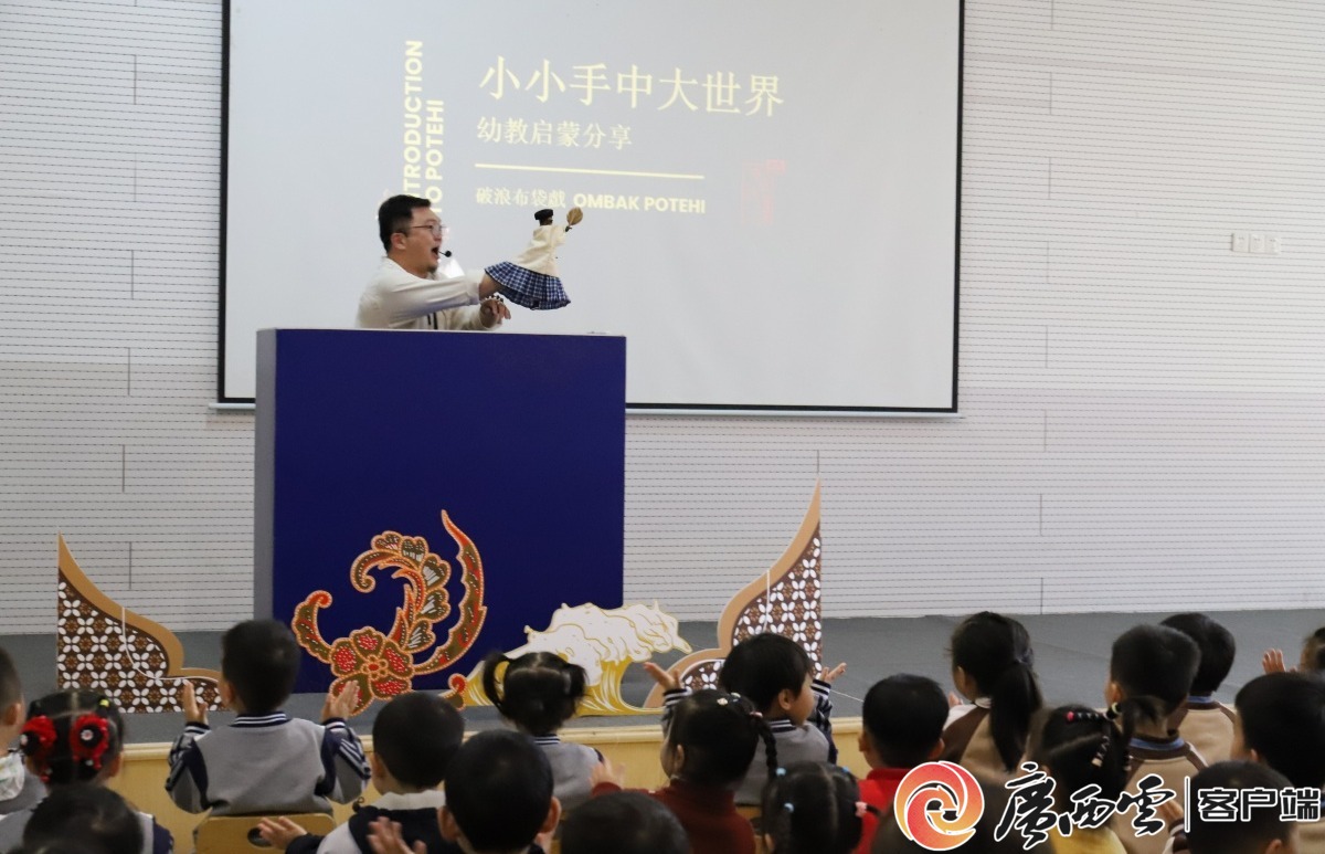 當(dāng)馬來西亞檳城的布袋木偶躍動(dòng)于中國孩子的掌心,古老的藝術(shù)瞬間“活”了起來。2026年1月16日,由中國—東盟學(xué)前教育協(xié)同創(chuàng)新發(fā)展中心與南寧梅沙學(xué)前教育共同舉辦的“根植非遺文化,具身傳承創(chuàng)美——中國·馬來西亞國際交流研討活動(dòng)”在南寧舉行。中馬學(xué)前教育工作者與藝術(shù)家共聚一堂,以“非遺傳承”為名,開啟一場雙向奔赴的國際研討。 視頻錄制:實(shí)習(xí)生 陸曉雯 陳鄧浩麟 活動(dòng)上,馬來西亞檳城破浪布袋戲團(tuán)藝術(shù)總監(jiān)林云濠帶來了生動(dòng)的布袋木偶表演。南寧梅沙幼兒園的孩子們?cè)诨?dòng)環(huán)節(jié)親手操作戲偶,布袋木偶在孩童手中嬉戲,笑意在臉龐綻放。他們于游戲之間感受傳統(tǒng)藝術(shù)的魅力,建立起非遺文化與童年體驗(yàn)的自然連結(jié)。非遺不再遙遠(yuǎn),它在觸摸、操作與游戲中,與童年體驗(yàn)自然連結(jié),這是文化傳承最生動(dòng)的一課。