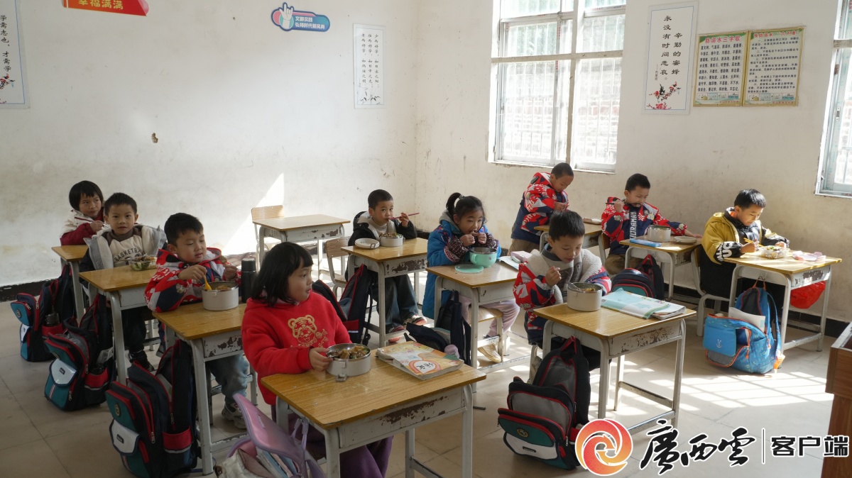 學(xué)生正在用餐。邱忠樂 攝 這不是一趟簡單的送達。它背后是鐘山縣為破解“麻雀學(xué)�!惫┎碗y題設(shè)計的精細鏈路:縣里統(tǒng)一招標專業(yè)公司(鐘山縣樂苗食品有限公司)負責(zé)食材集中采購與初配送;將食材配送至如黃寶完小這樣的“中心食堂”;再由“中心食堂”制餐,通過專車完成最后也是最艱難的“熱鏈”配送,形成“食材統(tǒng)一配送+中心學(xué)校制餐+專線配送上門”的完整保障鏈條。林坪教學(xué)點,就是這條漫長鏈條的終點。