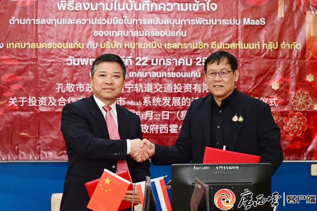 江濤連湄水,友城續(xù)新章。1月22日,南寧軌道交通投資集團(tuán)與南寧國際友城泰國孔敬市政府簽署《孔敬市MaaS數(shù)字交通生態(tài)系統(tǒng)合作意向備忘錄》,標(biāo)志著南寧“交通出行+綜合服務(wù)”MaaS模式將正式登陸東盟市場。作為首個(gè)落地友城的人工智能合作項(xiàng)目,這不僅標(biāo)志著兩市友好關(guān)系在數(shù)字時(shí)代結(jié)出碩果,更彰顯了南寧以友城為圖、以AI為橋,助力國家“一帶一路”高質(zhì)量發(fā)展、共筑中國—東盟命運(yùn)共同體的責(zé)任與擔(dān)當(dāng)。