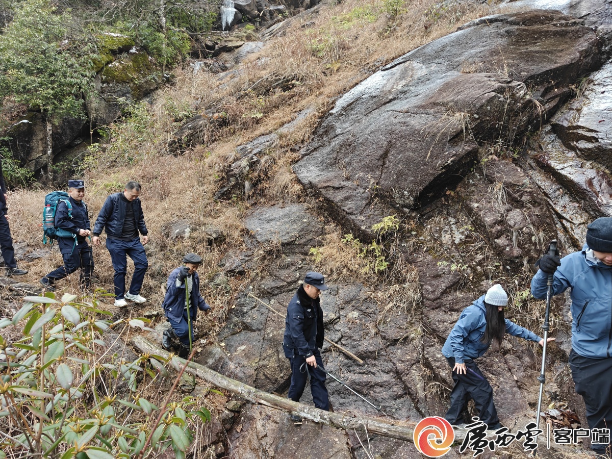 全州警方成功救援兩名被困驢友。 4天3夜,懸崖峭壁,海拔2000米……近日,兩名年輕驢友在深山陷入絕境。民警踏雪開路,一場與時間賽跑的生命救援,在桂林全州真寶鼎的凜冽風雪中展開。 1月24日清晨,全州縣公安局接到緊急求救:兩名首次前往天湖地區(qū)的徒步愛好者,在才灣鎮(zhèn)真寶鼎一帶迷路,失聯(lián)已達4天3夜。其中一人腳部受傷無法行走。兩人裝備不足、缺乏經(jīng)驗,深山積雪深厚、地形復雜,夜間極寒與食物耗盡使他們面臨嚴重的失溫危險,情況萬分危急。 指揮中心立即啟動應急聯(lián)動機制。才灣派出所率先出動,特巡警大隊蔣楊大隊長帶隊,攜帶無人機、登山繩、急救物資等專業(yè)救援裝備火速前往救援�?紤]到真寶鼎山勢險峻,冬季積雪覆蓋路徑難辨,救援隊特邀熟悉地形的當?shù)卮迕褡鳛橄驅(qū)�,即刻進山。