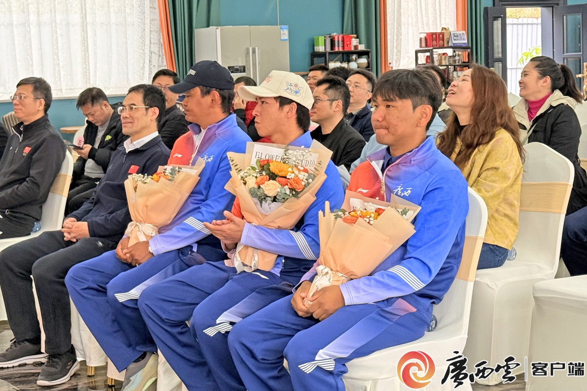 廣西馬術(shù)隊(duì)部分教練員、運(yùn)動(dòng)員返桂。 在2025年11月17日舉行的第十五屆全運(yùn)會(huì)馬術(shù)場地障礙團(tuán)體決賽中,廣西隊(duì)運(yùn)動(dòng)員木拉得力、哈扎克拜、洪志華、達(dá)布西力特聯(lián)袂奪得冠軍,實(shí)現(xiàn)了廣西馬術(shù)運(yùn)動(dòng)全運(yùn)會(huì)獎(jiǎng)牌“零”的突破。兩日后,木拉得力在場地障礙個(gè)人賽中再次摘金,為廣西馬術(shù)隊(duì)開創(chuàng)性實(shí)現(xiàn)全運(yùn)會(huì)“雙冠”。結(jié)束全運(yùn)會(huì)征程后,廣西馬術(shù)隊(duì)繼續(xù)留在廣東省外訓(xùn)。 這是廣西馬術(shù)隊(duì)全運(yùn)會(huì)奪金后首次回到廣西。當(dāng)天,自治區(qū)體育局黨組書記、局長黃劍峰帶隊(duì)前往上林縣慰問廣西馬術(shù)隊(duì),充分肯定廣西馬術(shù)隊(duì)成立后“七年磨一劍”取得的亮眼成績,勉勵(lì)教練員、運(yùn)動(dòng)員繼續(xù)苦練技能,力爭再創(chuàng)佳績。