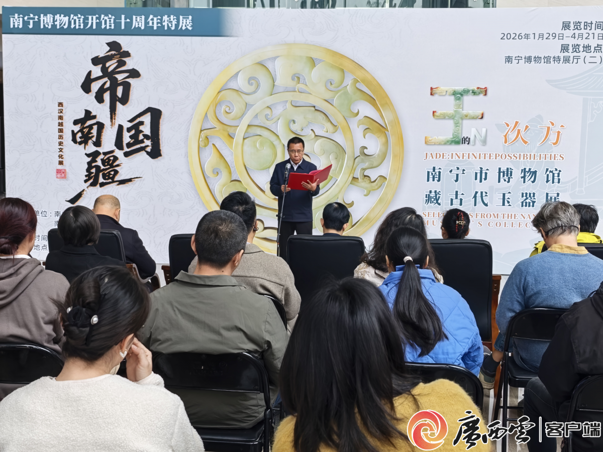 1月29日,南寧市博物館迎來開館十周年,兩大年度特展:“帝國南疆——西漢南越國歷史文化展”與“玉的N次方——南寧市博物館藏古代玉器展”于當(dāng)日同期開幕。