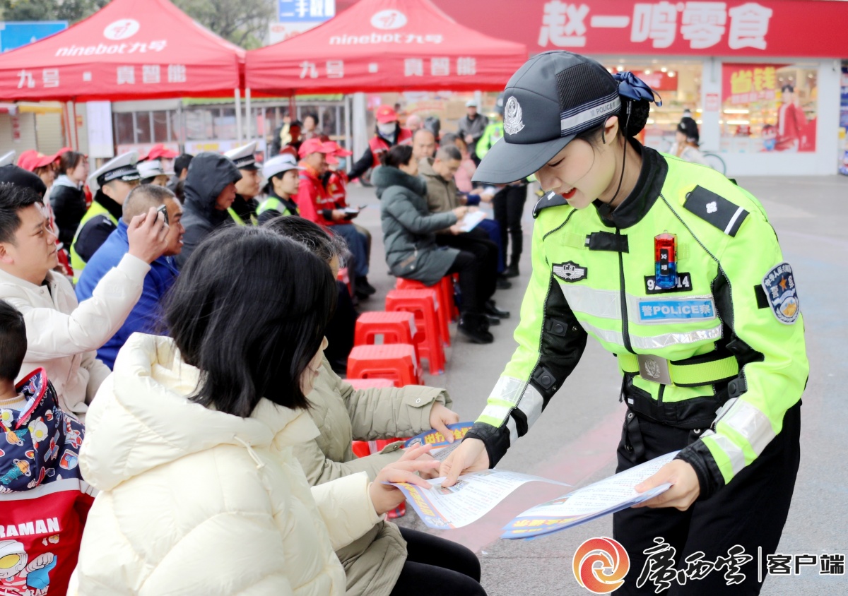 柳州市公安局交管支隊組織交通安全宣傳小分隊,通過宣講展演、互動問答等方式,向群眾傳遞交通安全知識。