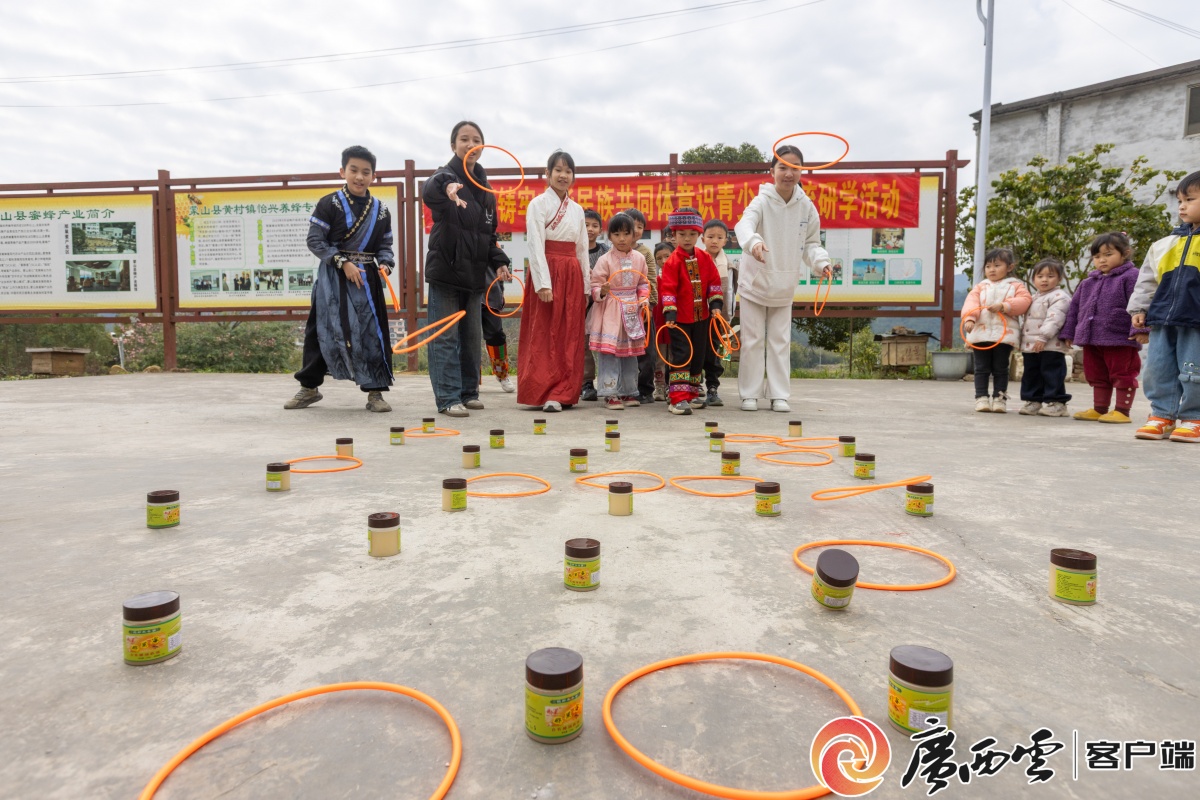 學(xué)生們進(jìn)行蜂蜜產(chǎn)品游園套圈活動(dòng)。 |