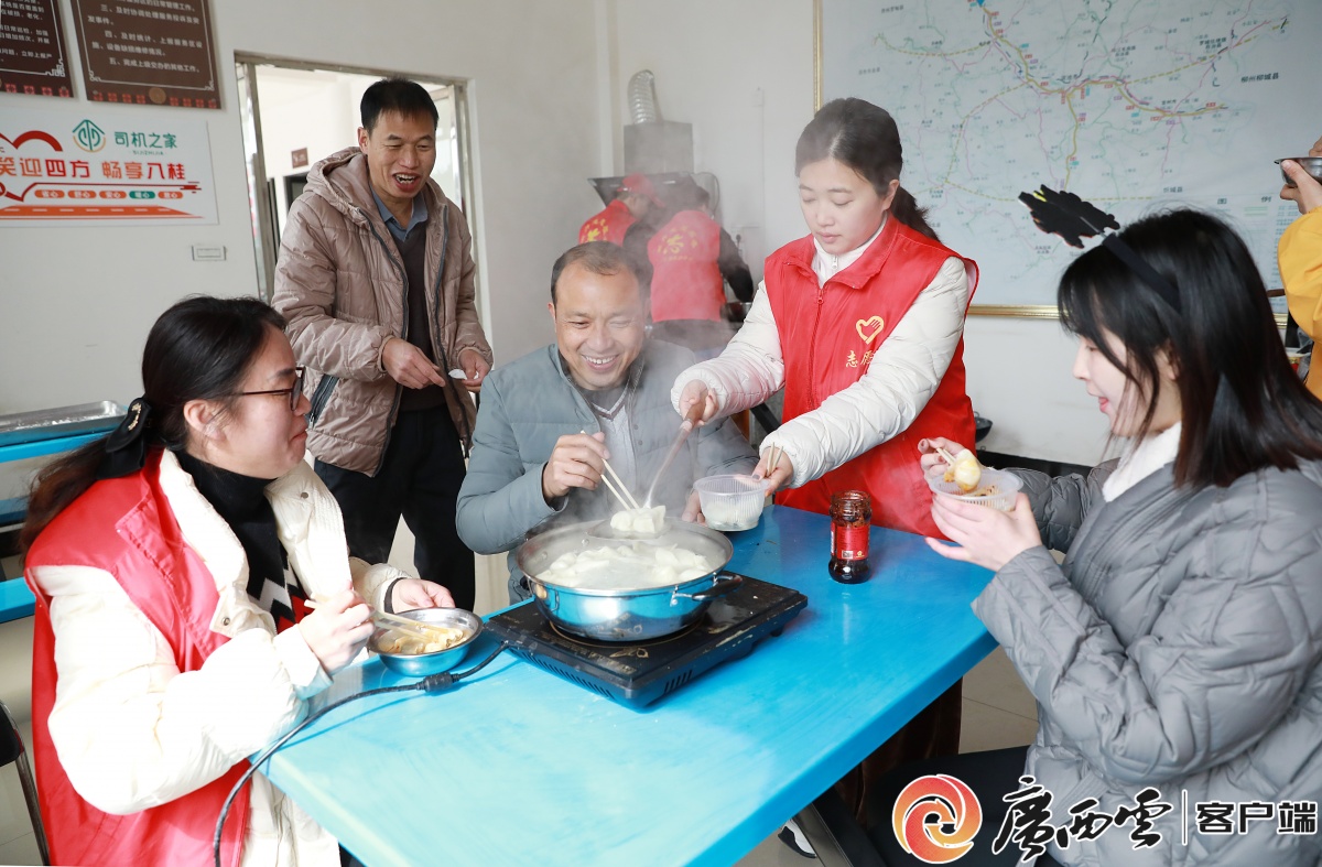 河池公路發(fā)展中心到國道210線南丹巴平公路服務(wù)區(qū)開展春運志愿服務(wù)活動。 當天,志愿服務(wù)人員早早就來到服務(wù)區(qū),將服務(wù)區(qū)裝點一番,讓現(xiàn)場充滿濃濃的喜慶氛圍�;顒娱_始后,志愿服務(wù)人員為司乘人員和過往群眾免費寫春聯(lián),贈送礦泉水、方便面、八寶粥、福字等,還與大家一起包餃子、做湯圓,將一碗碗熱氣騰騰的餃子、湯圓送到他們的手里,讓過往司乘人員暖胃又暖心。