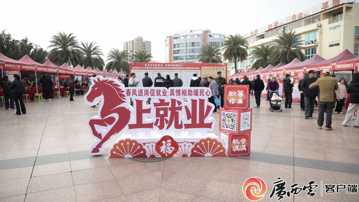 招聘會現(xiàn)場。 2月2日,象州縣文化廣場人頭攢動(dòng),以“春風(fēng)送崗促就業(yè),真情相助暖民心”為主題的象州縣2026年春風(fēng)行動(dòng)暨就業(yè)援助季專場招聘會在此舉行�;顒�(dòng)采用“線上直播招聘+線下現(xiàn)場招聘”模式,并融入勞動(dòng)技能動(dòng)態(tài)展示、就業(yè)創(chuàng)業(yè)知識趣味競猜等互動(dòng)環(huán)節(jié),將就業(yè)服務(wù)精準(zhǔn)送至群眾“家門口”,現(xiàn)場初步達(dá)成就業(yè)意向近300人次。