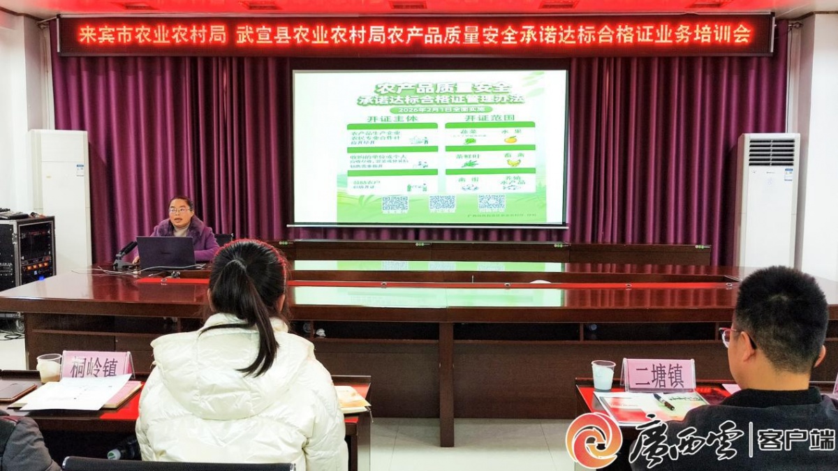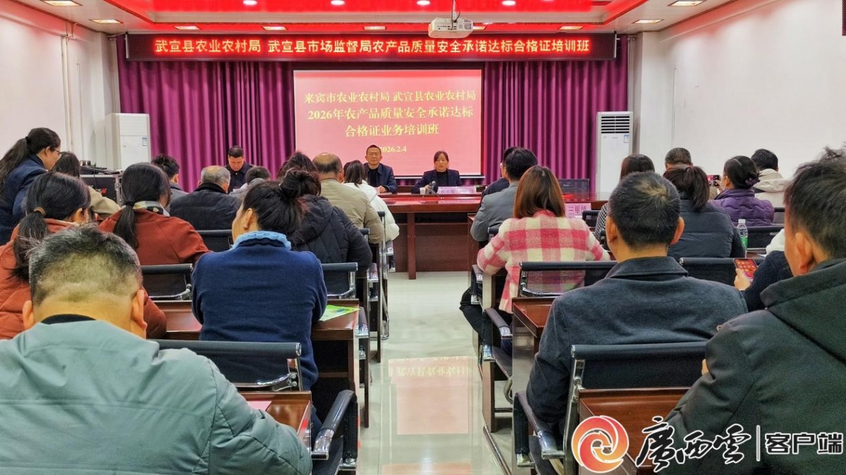 培訓會現(xiàn)場。 2月4日,在《農產品質量安全承諾達標合格證管理辦法》(以下簡稱《辦法》)正式施行僅3天之際,武宣縣率先舉辦專項宣貫培訓班,組織全縣100余家重點生產經營主體開展系統(tǒng)學習,以快速響應和務實舉措推動新規(guī)落地,成為廣西首批系統(tǒng)性開展合格證管理培訓的縣,打響了全縣農產品質量安全溯源體系建設的“第一槍”。