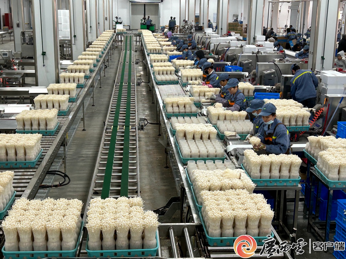 廣西雪榕科技有限公司工廠內(nèi)工人正在包裝食用菌。覃塘區(qū)融媒體中心供圖 位于覃塘區(qū)鳳凰林場(chǎng)腹地的廣西雪榕生物科技有限公司食用菌生產(chǎn)車間內(nèi),鮮菇正新鮮出廠,銷往廣西、廣東及東南亞市場(chǎng)。該公司日產(chǎn)金針菇、海鮮菇等鮮菇120噸,是自治區(qū)“菜籃子”工程保供基地。 穩(wěn)定產(chǎn)出源于智能化工廠全流程精準(zhǔn)管控。園區(qū)構(gòu)建覆蓋菌菇生產(chǎn)全周期的智能化體系,模擬自然適宜的生長(zhǎng)條件。雪榕生物公司調(diào)控技術(shù)員黃國(guó)慶介紹,培育空間內(nèi)通過物聯(lián)網(wǎng)傳感器實(shí)時(shí)監(jiān)測(cè)溫濕度、二氧化碳濃度,結(jié)合AI算法動(dòng)態(tài)調(diào)節(jié)生長(zhǎng)環(huán)境。