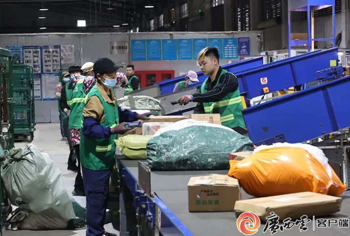 貴港市郵政分公司快遞分揀中心,工作人員在分揀快件。陸穎敏 攝 貴港高新區(qū)粵桂循環(huán)產(chǎn)業(yè)園內(nèi),廣西眾橫云倉(cāng)科技有限公司分揀倉(cāng)庫(kù)一派繁忙的景象。6000平方米倉(cāng)儲(chǔ)空間分區(qū)布局,8臺(tái)快遞面單打印機(jī)高效運(yùn)轉(zhuǎn),工人掃碼、分揀、打包有條不紊。 “目前我們共服務(wù)13家企業(yè),其中紙業(yè)企業(yè)12家、服裝企業(yè)1家,月均發(fā)送快遞160萬(wàn)件�!睆V西眾橫云倉(cāng)科技有限公司業(yè)務(wù)經(jīng)理李紅亮說,園區(qū)的產(chǎn)品運(yùn)到云倉(cāng)僅需五六分鐘,從打包到裝車發(fā)貨,全程不超過3小時(shí)。