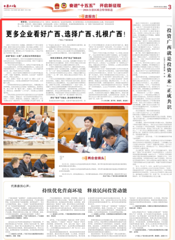 讀報(bào)告丨更多企業(yè)看好廣西、選擇廣西、扎根廣西! |
