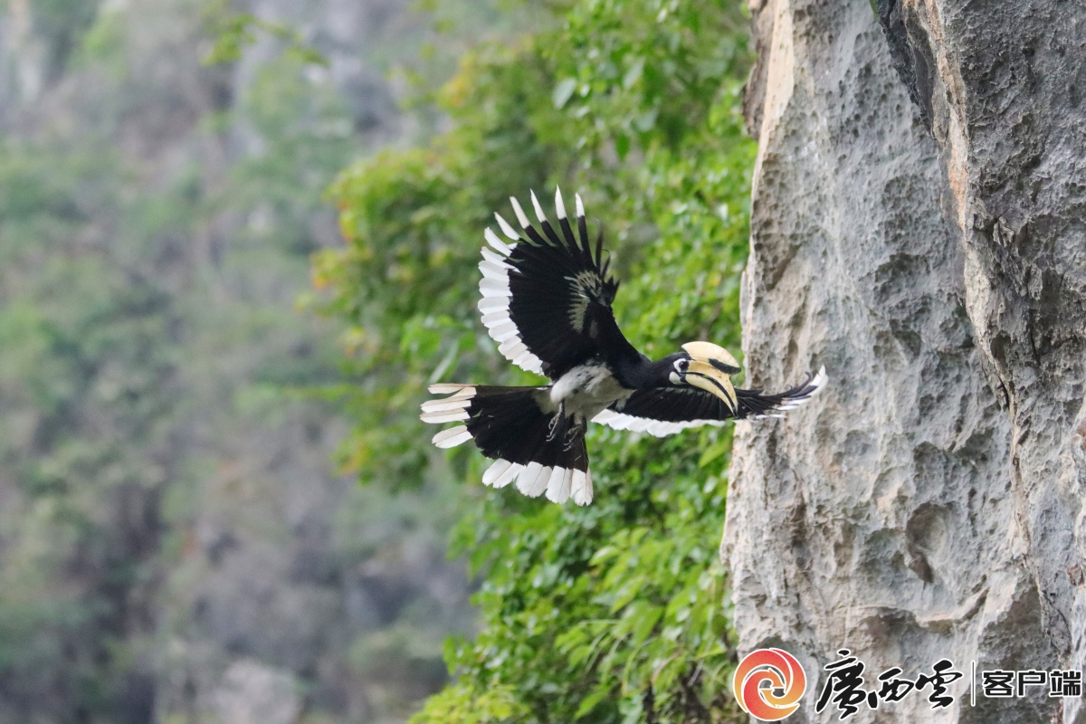 崇左·邊行 清晨,薄霧繚繞在喀斯特峰林間。廣西恩城國家級自然保護(hù)區(qū)管護(hù)員凌海龍舉起望遠(yuǎn)鏡,望向?qū)γ鎽已律系膸r洞。他輕聲示意身旁的科研人員:“看,那對‘帶盔甲的大家伙’又出來了�!辩R頭中,兩只冠斑犀鳥正用寬大的喙為雛鳥梳理羽毛。 曾經(jīng)蹤跡罕見的冠斑犀鳥種群從2019年的2只發(fā)展到14只,連續(xù)7年在石山崖洞成功穩(wěn)定繁育雛鳥。“它們是石山生態(tài)的‘風(fēng)向標(biāo)’,種群的回歸,說明生態(tài)真的在變好�!睆V西大學(xué)教授蔣愛伍感慨道。 冠斑犀鳥的歸來,見證著曾經(jīng)的“中國錳都”大新縣歷經(jīng)轉(zhuǎn)型陣痛后,堅(jiān)定走上綠色發(fā)展之路。如今,這里正把生態(tài)“高顏值”轉(zhuǎn)化為發(fā)展“高質(zhì)量”。 冠斑犀雄鳥覓食歸來。農(nóng)偉 攝 刮骨療毒,重繪生態(tài)底色 大新縣的轉(zhuǎn)型,始于對發(fā)展路徑的深刻反思與壯士斷腕的決心。 “以前運(yùn)錳礦的車隊(duì)一過,揚(yáng)起的紅土粉塵讓晾曬的衣服沾滿了灰,河水有時(shí)都泛著異樣顏色�!痹谙吕祖�(zhèn)一處已覆土復(fù)綠的錳礦舊址旁,老礦工農(nóng)繁的回憶,勾勒出資源粗放開發(fā)時(shí)期的模樣。 作為我國重要的錳業(yè)基地,大新在貢獻(xiàn)工業(yè)產(chǎn)值的同時(shí),也背上了沉重的環(huán)境包袱。 改變,需要刮骨療毒的勇氣。大新縣以“五級書記抓環(huán)�!睘榻y(tǒng)領(lǐng),打出“關(guān)停并轉(zhuǎn)”組合拳:堅(jiān)決關(guān)停22家“散亂污”企業(yè),對245畝歷史遺留礦坑和受損土地實(shí)施系統(tǒng)性復(fù)墾復(fù)綠。截至2025年,全縣縣級集中式飲用水水源地、“千噸萬人”水源地水質(zhì)達(dá)標(biāo)率,以及主要河流地表水考核斷面水質(zhì)達(dá)標(biāo)率均達(dá)100%,空氣質(zhì)量優(yōu)良天數(shù)比率穩(wěn)定在96%以上。 更深層次的修復(fù)在于生態(tài)系統(tǒng)的整體性保護(hù)。大新縣將183萬畝國土面積劃入生態(tài)保護(hù)紅線,建立4個(gè)國家級、2個(gè)地方級自然保護(hù)地,并創(chuàng)新“科研機(jī)構(gòu)+保護(hù)區(qū)+社區(qū)村民”協(xié)同共管模式。邀請中國科學(xué)院動物研究所等機(jī)構(gòu)的專家常駐于此,與數(shù)百名生態(tài)護(hù)林員、村民志愿者組成的“綠色守護(hù)隊(duì)”共同開展監(jiān)測巡護(hù)。 修復(fù)后的綠水青山,成了野生動植物回歸的樂園。監(jiān)測數(shù)據(jù)顯示,黨的十八大以來,大新縣境內(nèi)新增國家重點(diǎn)保護(hù)野生動植物種類成倍增長——野生動物從29種增至58種,野生植物從11種增至39種;一度瀕臨滅絕的黑葉猴種群,在恩城保護(hù)區(qū)從7—8群、52—55只增長至29群、226只,其活動范圍也從5個(gè)鄉(xiāng)鎮(zhèn)擴(kuò)展到10個(gè)鄉(xiāng)鎮(zhèn)。“生物多樣性保護(hù)成效,是檢驗(yàn)生態(tài)環(huán)境質(zhì)量最硬的標(biāo)尺�!睆V西生態(tài)學(xué)學(xué)會專家評價(jià),“大新的實(shí)踐,為喀斯特脆弱的生態(tài)系統(tǒng)修復(fù)提供了寶貴樣本�!�