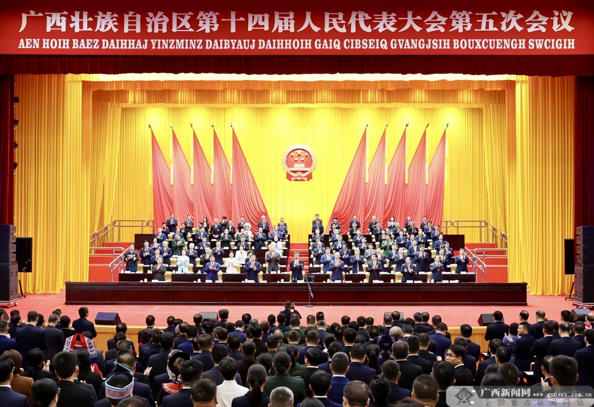 會(huì)議現(xiàn)場(chǎng)。記者 鄧華 攝 會(huì)議分別表決通過(guò)了關(guān)于政府工作報(bào)告、自治區(qū)國(guó)民經(jīng)濟(jì)和社會(huì)發(fā)展第十五個(gè)五年規(guī)劃綱要、自治區(qū)2025年國(guó)民經(jīng)濟(jì)和社會(huì)發(fā)展計(jì)劃執(zhí)行情況與2026年國(guó)民經(jīng)濟(jì)和社會(huì)發(fā)展計(jì)劃、全區(qū)與自治區(qū)本級(jí)2025年預(yù)算執(zhí)行情況和2026年預(yù)算、自治區(qū)人大常委會(huì)工作報(bào)告、自治區(qū)高級(jí)人民法院工作報(bào)告、自治區(qū)人民檢察院工作報(bào)告的決議,表決通過(guò)《廣西壯族自治區(qū)糧食安全保障條例》。 陳剛指出,會(huì)議期間,全體代表以高度的政治責(zé)任感和強(qiáng)烈的主人翁精神,依法履職、建言獻(xiàn)策,保證了大會(huì)圓滿(mǎn)成功。這是一次高舉旗幟、催人奮進(jìn)的大會(huì),是一次實(shí)干創(chuàng)新、團(tuán)結(jié)奮進(jìn)的大會(huì),必將激勵(lì)全區(qū)5700多萬(wàn)各族人民,在譜寫(xiě)中國(guó)式現(xiàn)代化廣西篇章的新征程中開(kāi)拓進(jìn)取、勇毅前行。 陳剛強(qiáng)調(diào),今年是中國(guó)共產(chǎn)黨成立105周年,是“十五五”開(kāi)局之年。自治區(qū)黨委十二屆十一次全會(huì)深入學(xué)習(xí)貫徹黨的二十屆四中全會(huì)精神,貫徹落實(shí)習(xí)近平總書(shū)記關(guān)于廣西工作論述的重要要求,科學(xué)謀劃廣西未來(lái)五年發(fā)展,自治區(qū)十四屆人大五次會(huì)議進(jìn)一步細(xì)化了今后五年的目標(biāo)任務(wù)舉措。站在新的起點(diǎn)上,我們要堅(jiān)持不懈用習(xí)近平新時(shí)代中國(guó)特色社會(huì)主義思想凝心鑄魂,堅(jiān)定擁護(hù)“兩個(gè)確立”、堅(jiān)決做到“兩個(gè)維護(hù)”,更加自覺(jué)同以習(xí)近平同志為核心的黨中央保持高度一致,全力推動(dòng)黨中央各項(xiàng)決策部署在八桂大地落地落實(shí),把習(xí)近平總書(shū)記為廣西擘畫(huà)的藍(lán)圖一步步變成美好現(xiàn)實(shí)。 陳剛強(qiáng)調(diào),要以更高標(biāo)準(zhǔn)更實(shí)舉措推進(jìn)全面從嚴(yán)治黨,大力發(fā)揚(yáng)斗爭(zhēng)精神,狠抓藍(lán)天立等案件以案促改促治,全力抓好中央巡視反饋意見(jiàn)整改,持續(xù)深入推進(jìn)涉重金屬環(huán)境污染專(zhuān)項(xiàng)排查整治,統(tǒng)籌建好政治生態(tài)、自然生態(tài)“兩個(gè)生態(tài)”。要因地制宜做好強(qiáng)產(chǎn)業(yè)大文章,做優(yōu)一產(chǎn)、做強(qiáng)二產(chǎn)、做大三產(chǎn),抓好制造業(yè)十大現(xiàn)代化支柱產(chǎn)業(yè)發(fā)展,加快構(gòu)建現(xiàn)代化產(chǎn)業(yè)體系,持續(xù)唱響高質(zhì)量發(fā)展主旋律。要以人工智能為小切口深化與東盟合作,突出策略、集成、應(yīng)用、開(kāi)放、安全,協(xié)力構(gòu)建“北上廣研發(fā)+廣西集成+東盟應(yīng)用”差異化發(fā)展路徑,加快打造面向東盟的人工智能?chē)?guó)際合作高地,更好服從服務(wù)于構(gòu)建中國(guó)—東盟命運(yùn)共同體。要堅(jiān)定向海圖強(qiáng)發(fā)展戰(zhàn)略方向,加快平陸運(yùn)河經(jīng)濟(jì)帶建設(shè),大力發(fā)展向海經(jīng)濟(jì),主動(dòng)服務(wù)和融入新發(fā)展格局。要全面貫徹總體國(guó)家安全觀(guān),高效統(tǒng)籌發(fā)展與安全,扎實(shí)推進(jìn)鑄牢中華民族共同體意識(shí)示范區(qū)建設(shè),切實(shí)維護(hù)好民族團(tuán)結(jié)和邊疆安寧,堅(jiān)決守住守好祖國(guó)“南大門(mén)”。要堅(jiān)定不移站穩(wěn)人民立場(chǎng),把老百姓的事辦實(shí)辦好,讓人民的幸福生活成為這個(gè)時(shí)代最溫暖的底色、最堅(jiān)實(shí)的注腳。要樹(shù)立和踐行正確政績(jī)觀(guān),堅(jiān)持從實(shí)際出發(fā)、按規(guī)律辦事,自覺(jué)為人民出政績(jī)、以實(shí)干出政績(jī),摸著良心干事,“以功成不必在我”的精神境界和“功成必定有我”的責(zé)任擔(dān)當(dāng),迎難而上、苦干實(shí)干,確�!笆逦濉遍_(kāi)好局、起好步。 陳剛指出,全區(qū)各級(jí)黨委要加強(qiáng)對(duì)人大工作的全面領(lǐng)導(dǎo),大力支持人大及其常委會(huì)依法行使職權(quán)、開(kāi)展工作,推動(dòng)新時(shí)代人大工作高質(zhì)量發(fā)展。各級(jí)人大及其常委會(huì)要積極發(fā)展全過(guò)程人民民主,依法履行職責(zé),充分發(fā)揮根本政治制度優(yōu)勢(shì),為“十五五”時(shí)期經(jīng)濟(jì)社會(huì)高質(zhì)量發(fā)展保駕護(hù)航。各級(jí)“一府一委兩院”要自覺(jué)接受人大監(jiān)督,認(rèn)真執(zhí)行人大決議決定,依法行政、依法監(jiān)察和公正司法。各級(jí)人大代表要倍加珍惜黨和人民的信任,不斷提升履職能力和成效,為人民代言、為人民履職、為人民服務(wù),切實(shí)擔(dān)負(fù)起人民賦予的光榮職責(zé)。 陳剛強(qiáng)調(diào),向海風(fēng)正千帆競(jìng),圖強(qiáng)壯志萬(wàn)里程。要更加緊密地團(tuán)結(jié)在以習(xí)近平同志為核心的黨中央周?chē)�,解放思想、�?chuàng)新求變,向海圖強(qiáng)、開(kāi)放發(fā)展,拿出躍馬揚(yáng)鞭的勇氣,激發(fā)萬(wàn)馬奔騰的活力,保持馬不停蹄的干勁,實(shí)干為要、創(chuàng)新為魂,用業(yè)績(jī)說(shuō)話(huà)、讓人民評(p