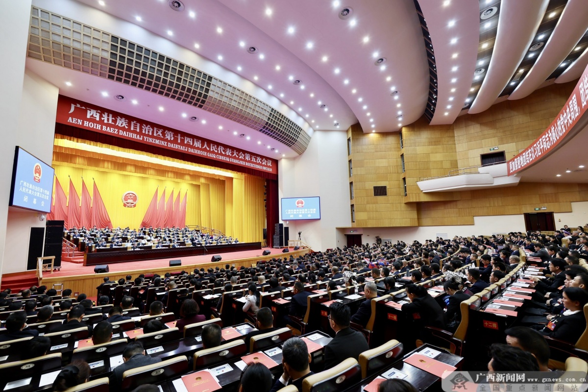 廣西云-廣西日?qǐng)?bào)2月6日訊(記者 陳貽澤 羅昌亮 佘鴻雁)2月6日上午,廣西壯族自治區(qū)第十四屆人民代表大會(huì)第五次會(huì)議圓滿(mǎn)完成各項(xiàng)議程,在廣西人民會(huì)堂勝利閉幕。